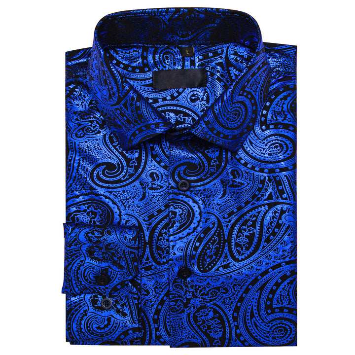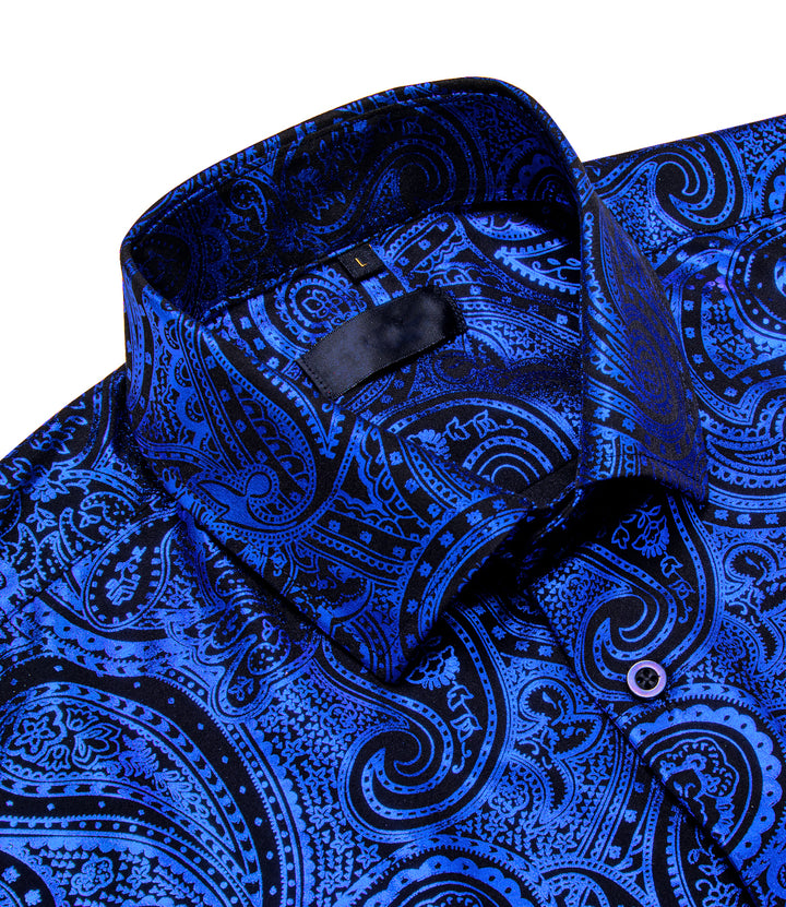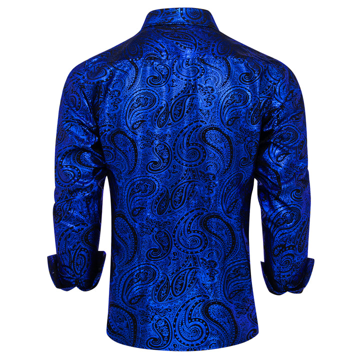 Klein Blue Black Paisley Hot Stamping Men's Long Sleeve Shirt