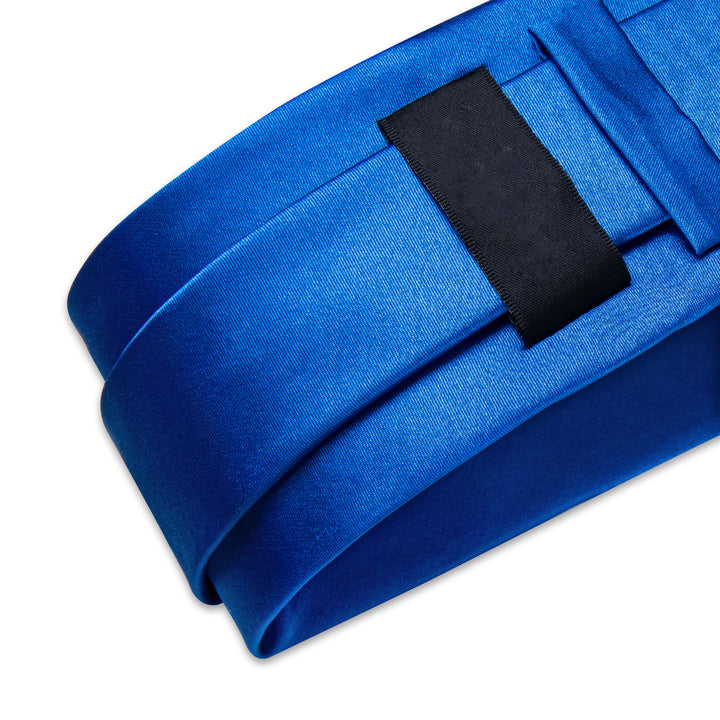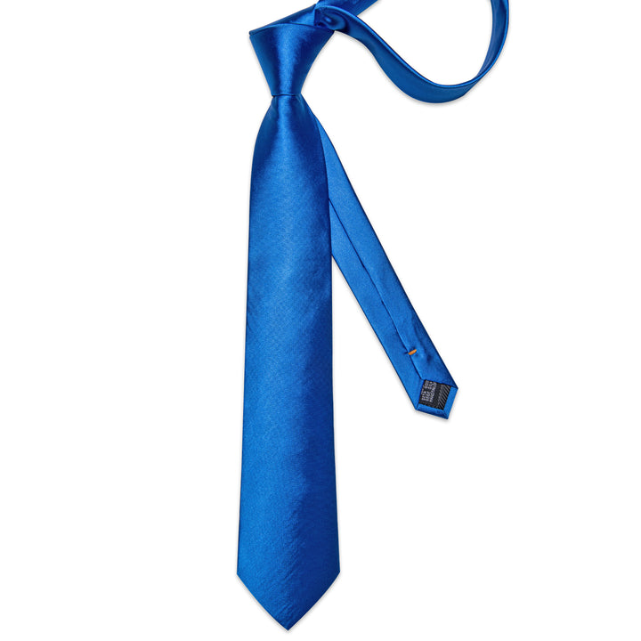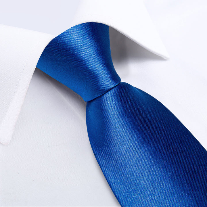 Klein Blue Pure Satin Solid Necktie Pocket Square Cufflinks Set