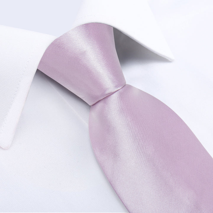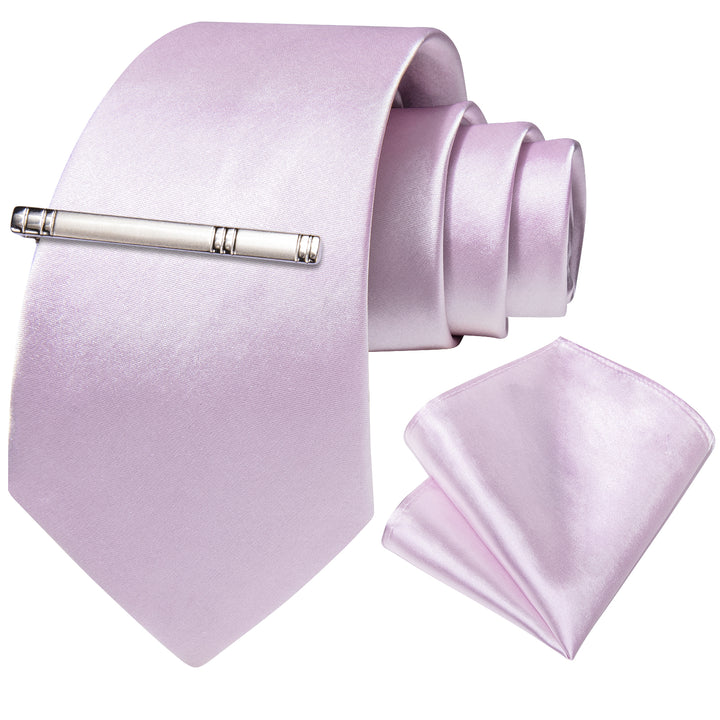 Light Purple Solid Satin Silk Tie Pocket Square Set with Tie Clip