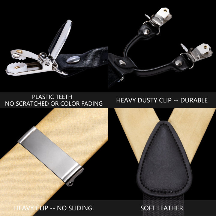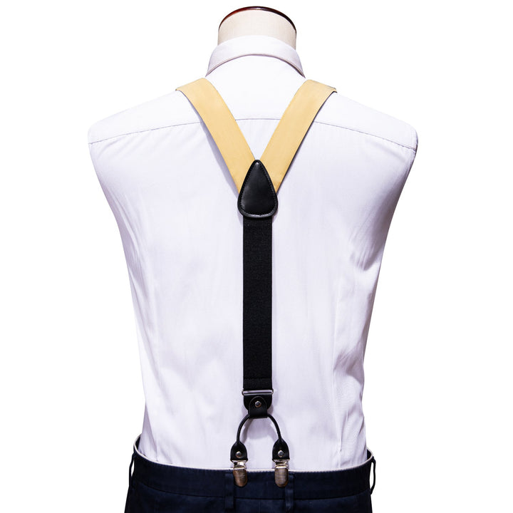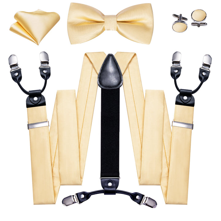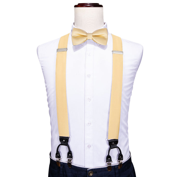 Light Yellow Solid Y Back Brace Clip-on Men's Suspender with Bow Tie Set