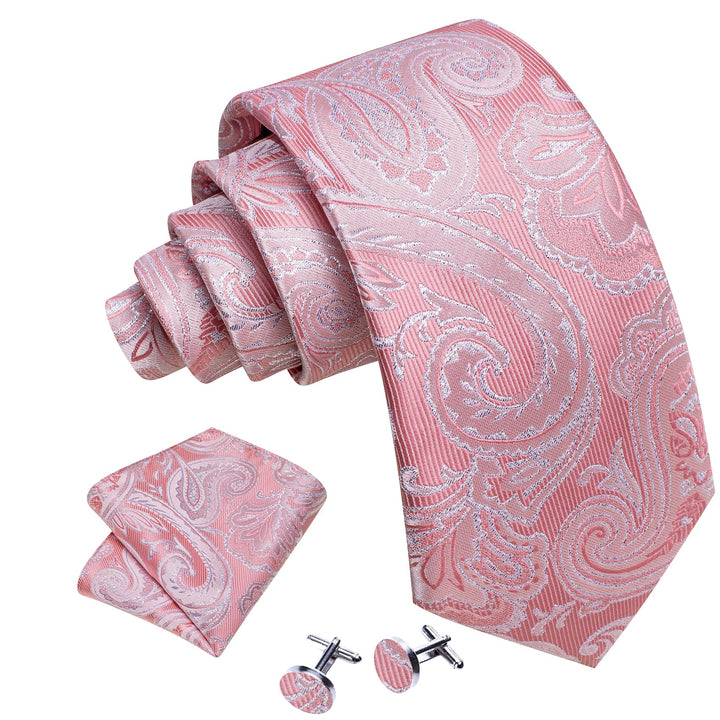 LightPink Lemonade Pink Paisley Men's Necktie Pocket Square Cufflinks Set