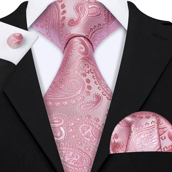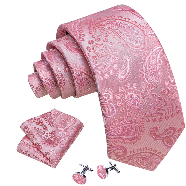 LightPink Paisley Men's Necktie Pocket Square Cufflinks Set