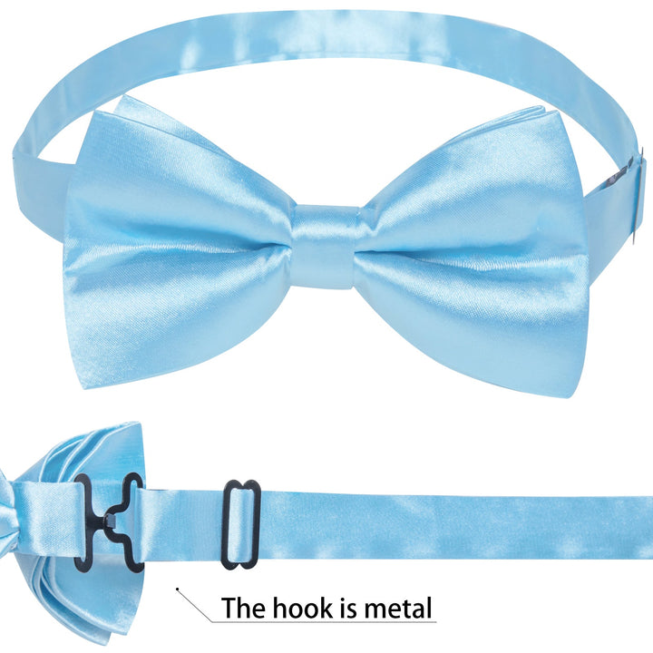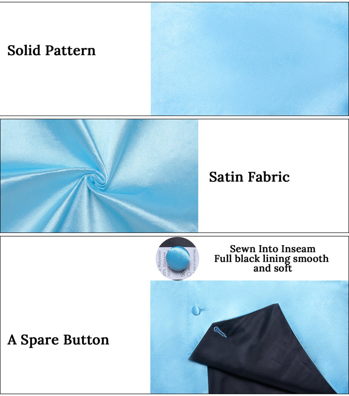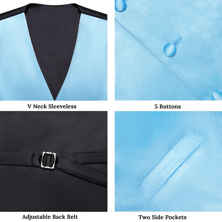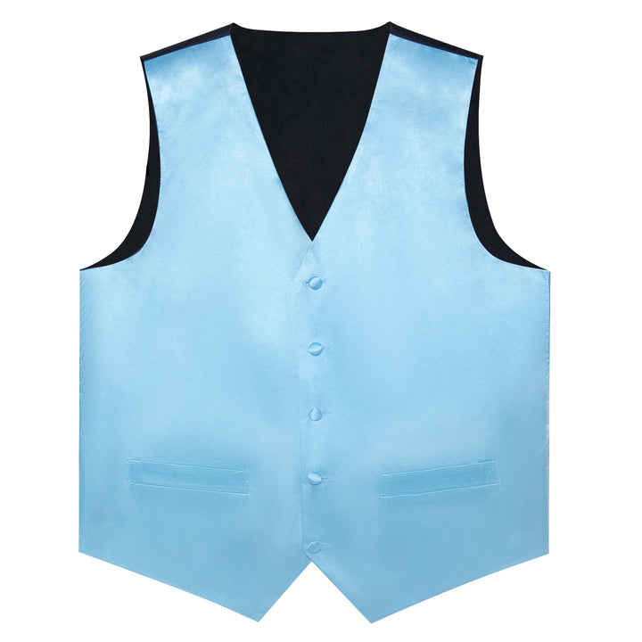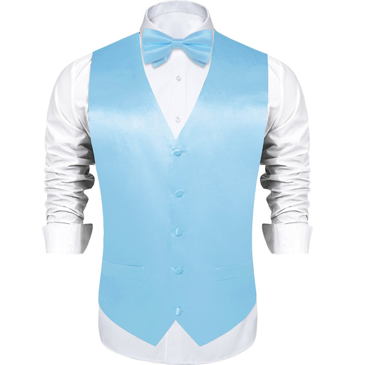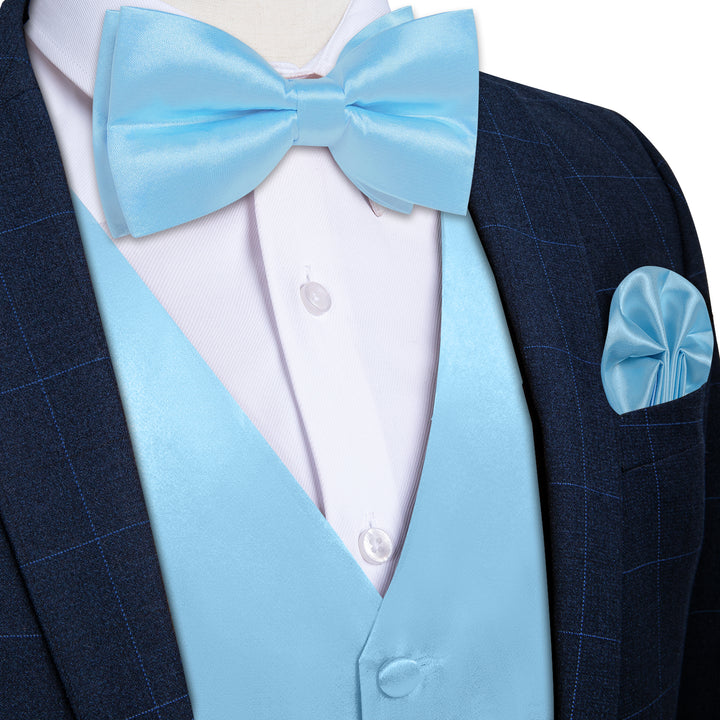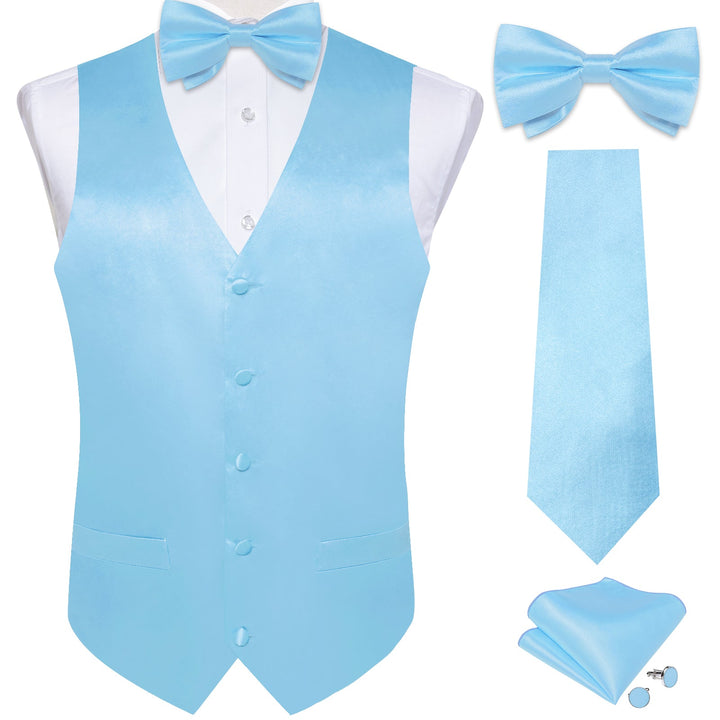 LightSkyBlue Solid Silk Men's Vest Hanky Cufflinks Bow Tie Set