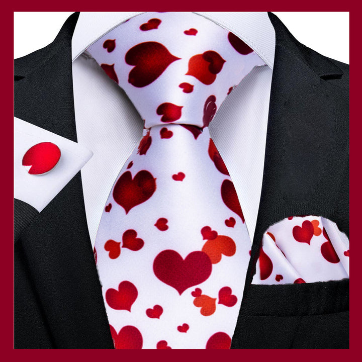 Ties2you Mens Silk Tie Novelty Lovely Heart Necktie Pocket Square Cufflinks Set
