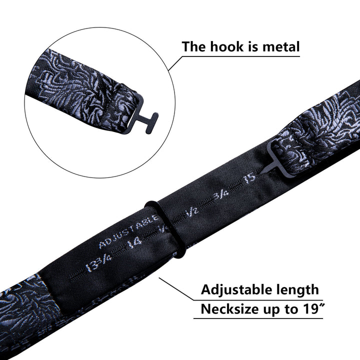 Ties2you Grey Paisley Bow Tie Self-tie Black Bowtie Pocket Square Cufflinks Set