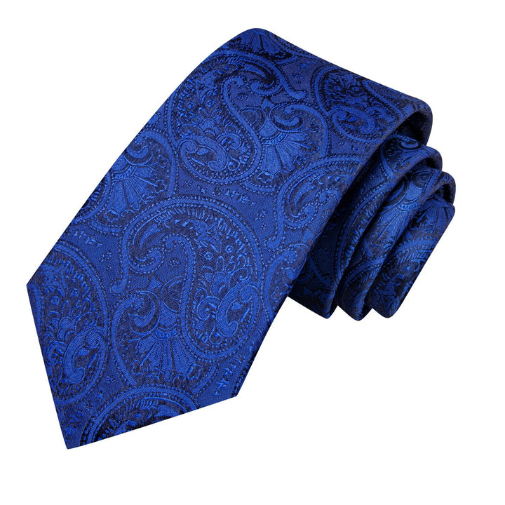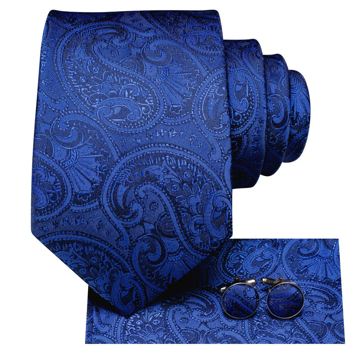 Deep Blue Paisley mens silk suit dress tie hanky cufflinks set