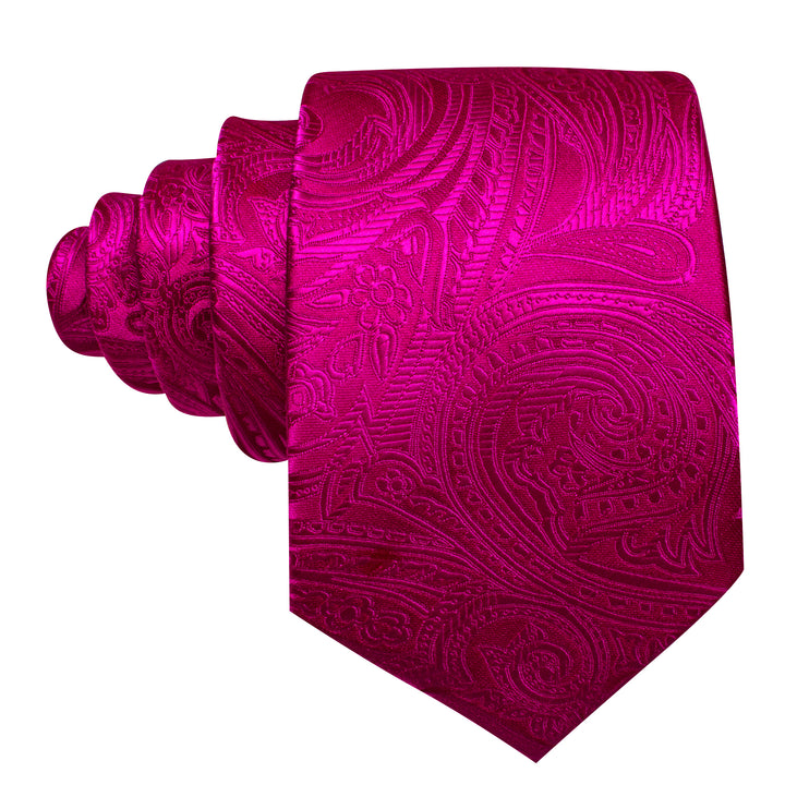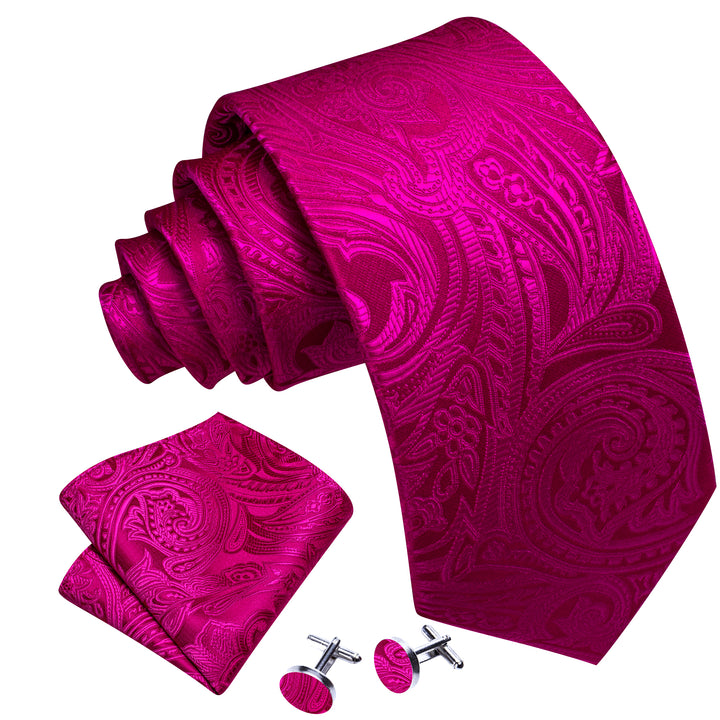 MediumVioletRed Paisley Men's Necktie Pocket Square Cufflinks Set