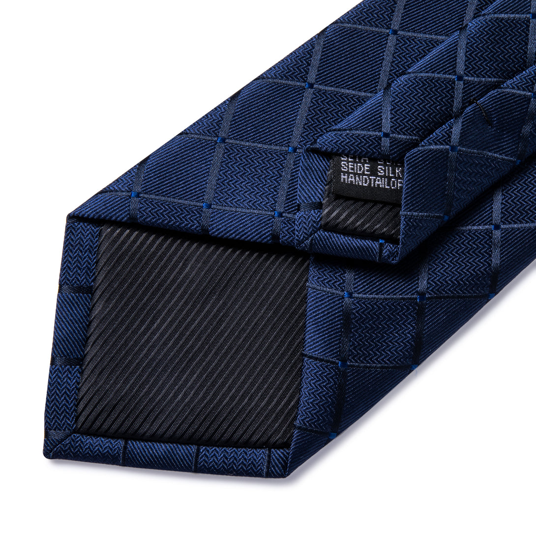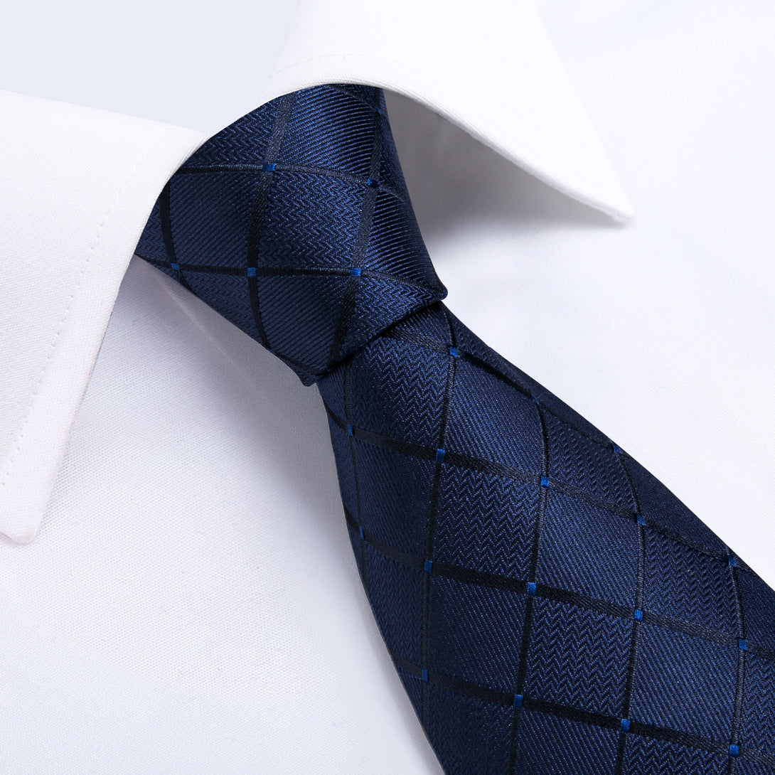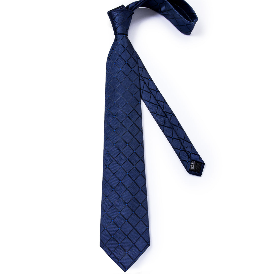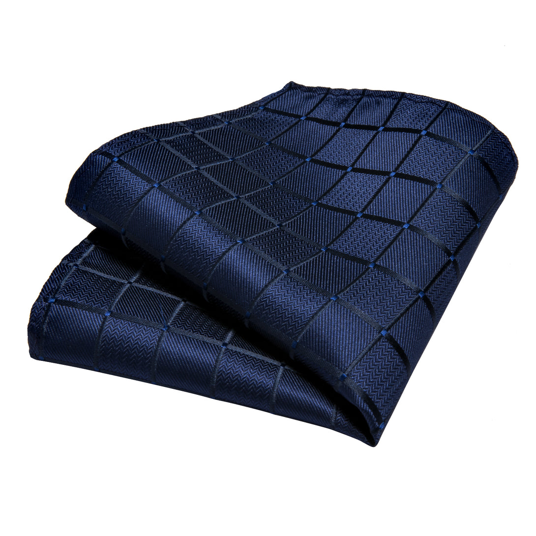 Navy Blue Plaids Necktie Handkerchief Cufflinks Lapel Pin Set