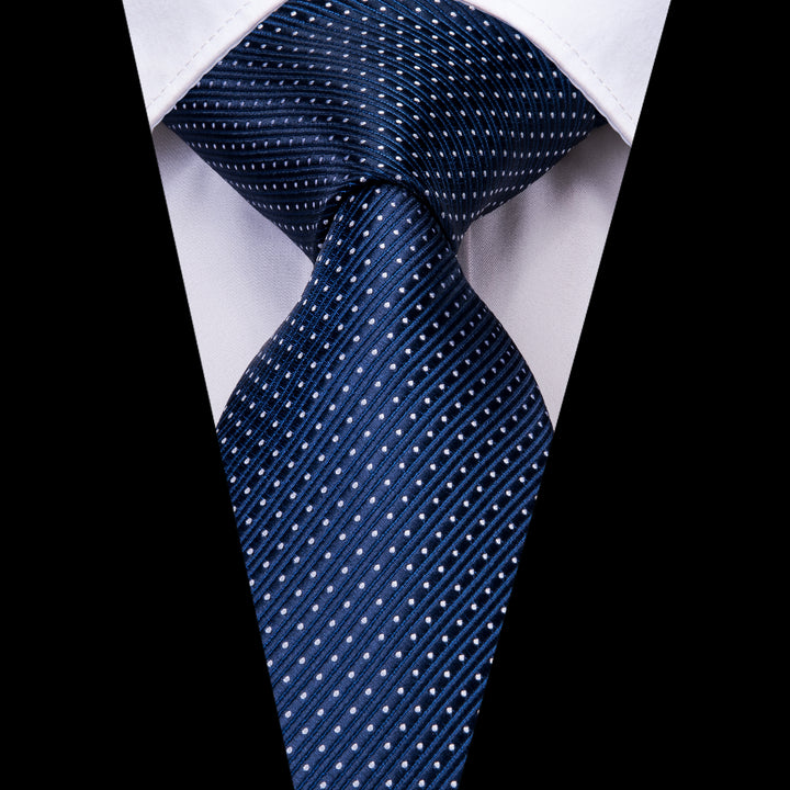 Navy Blue Polka Dot Men's Necktie Pocket Square Cufflinks Set