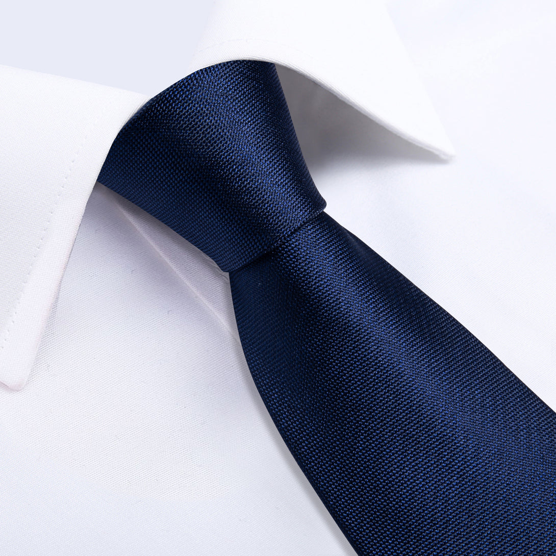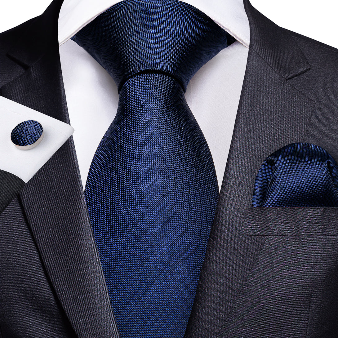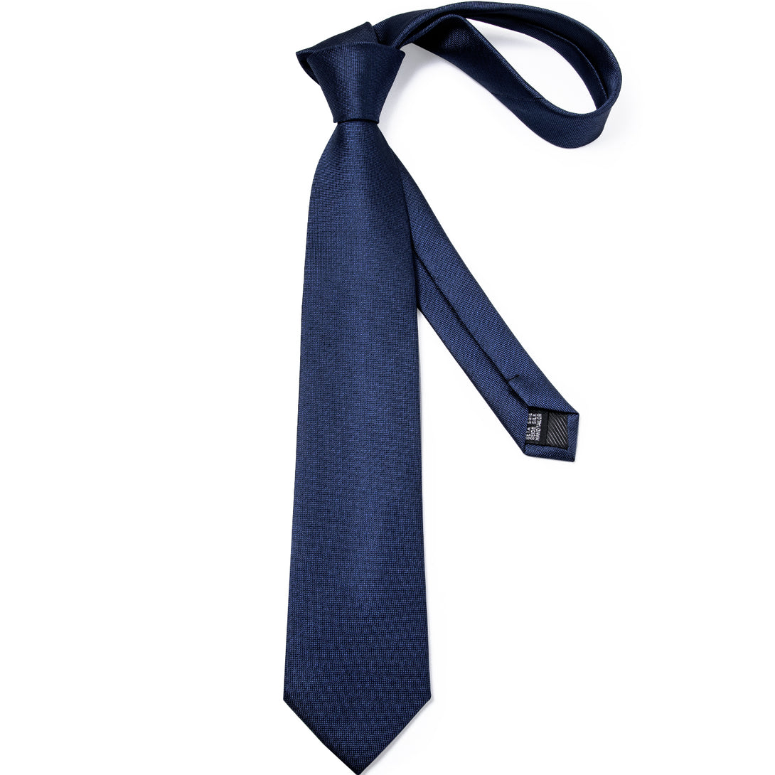 Navy Blue Solid Tie Pocket Square Cufflinks Set 8cm