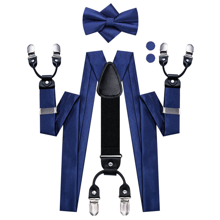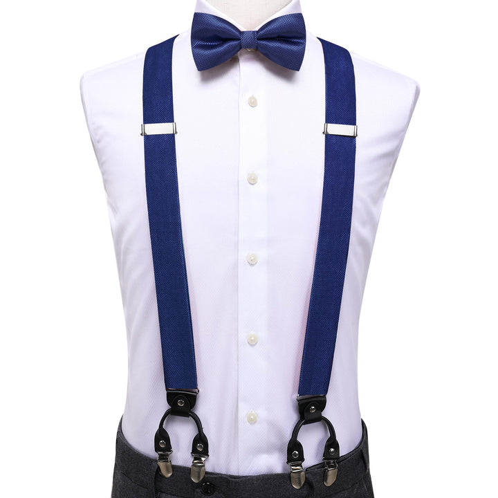 Navy Blue Y Back Brace Clip-on Men's Suspender with Bow Tie Set