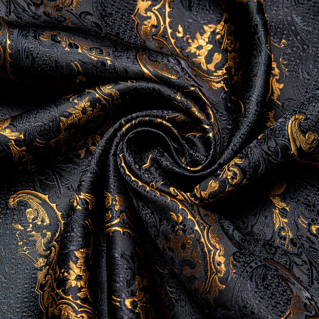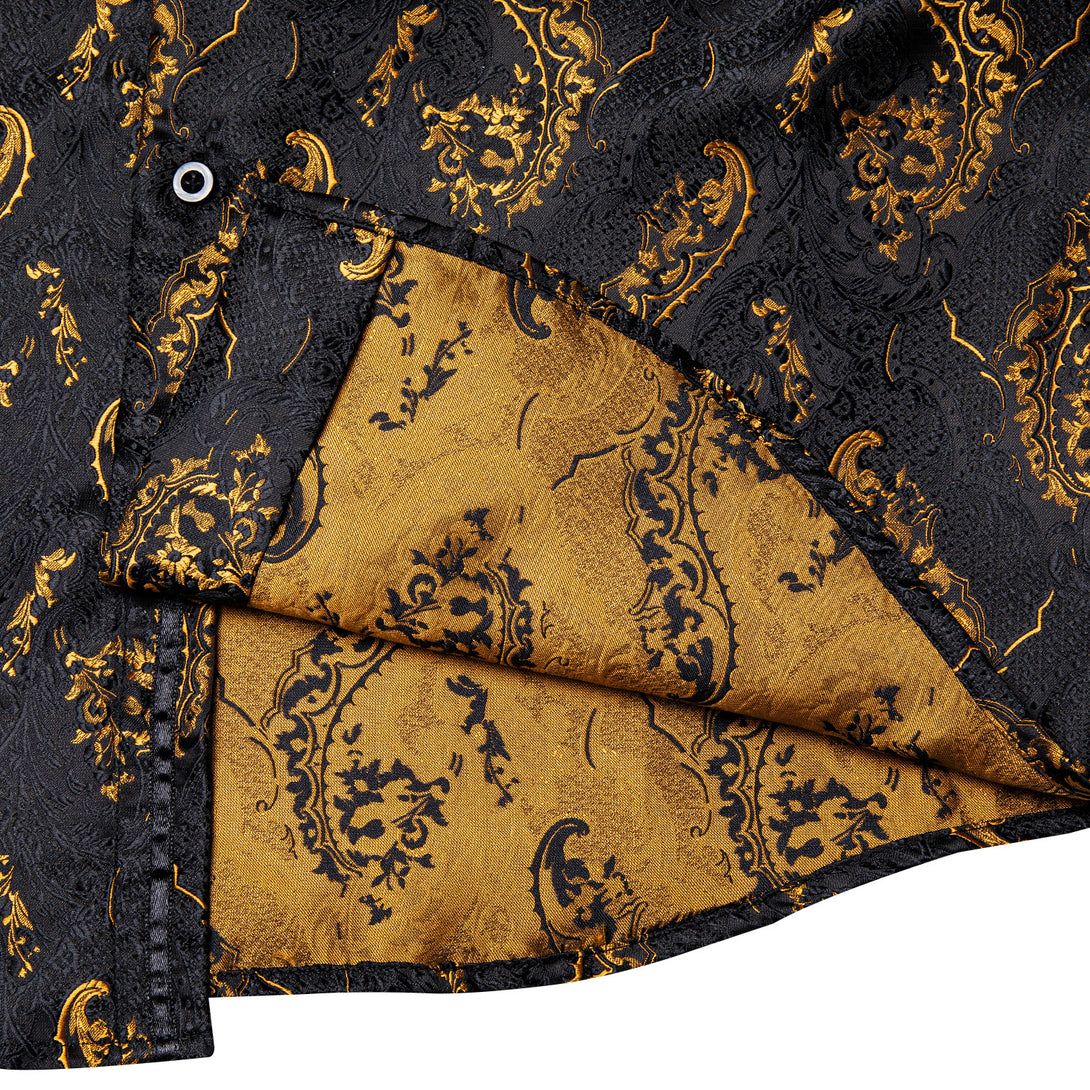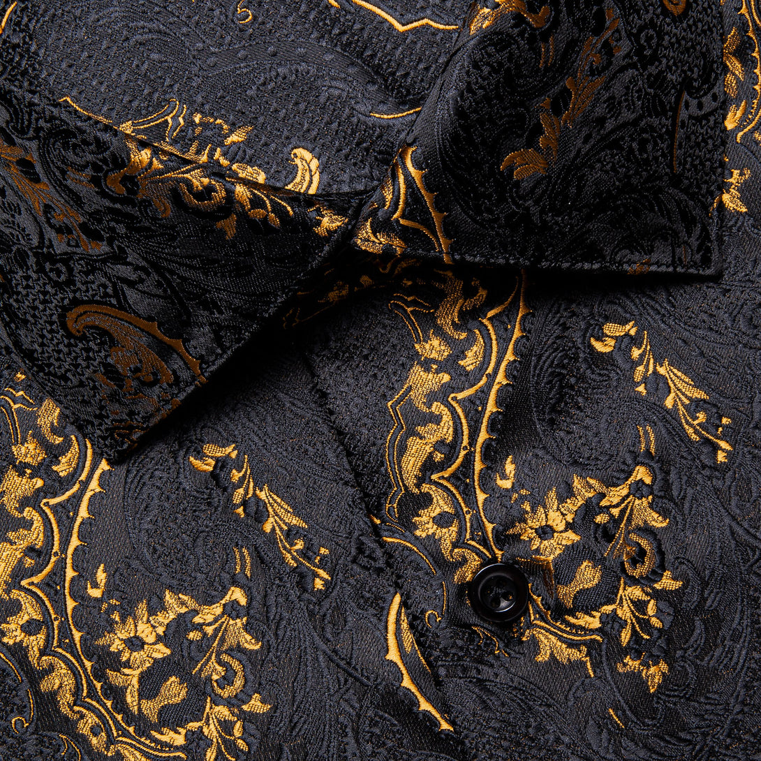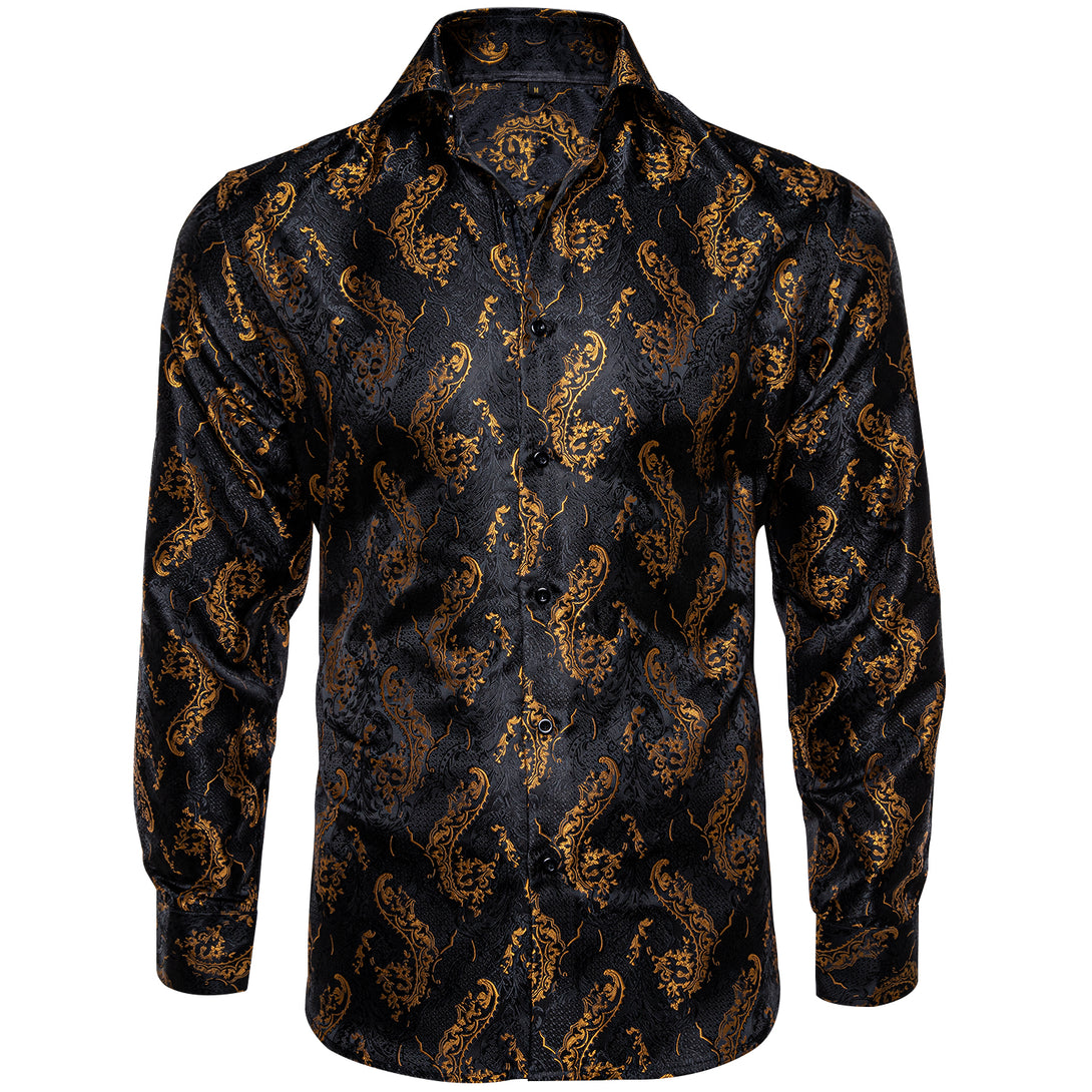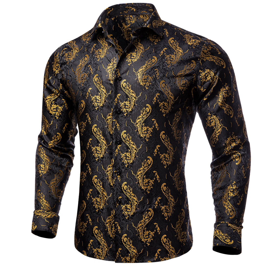 Ties2you Black Dress Shirt Mens Gold Paisley Silk Casual Long Sleeve Button Down Shirt