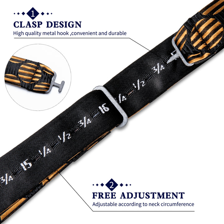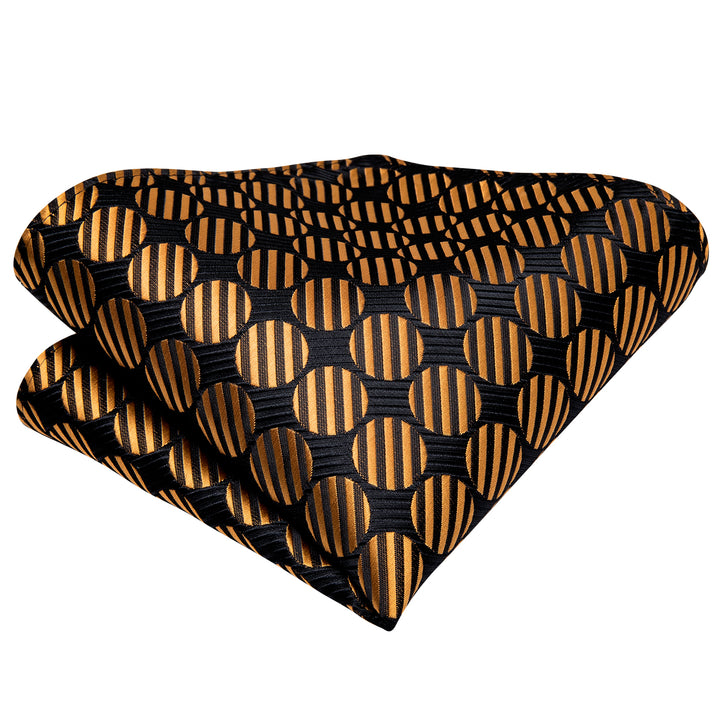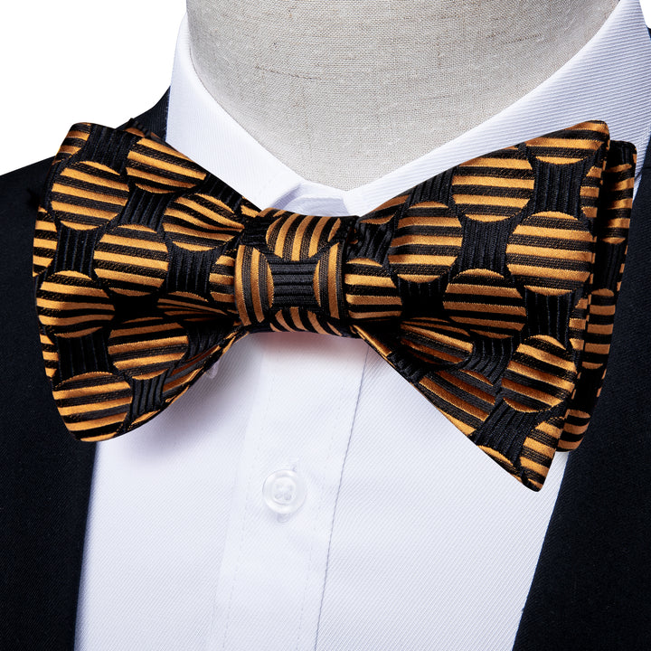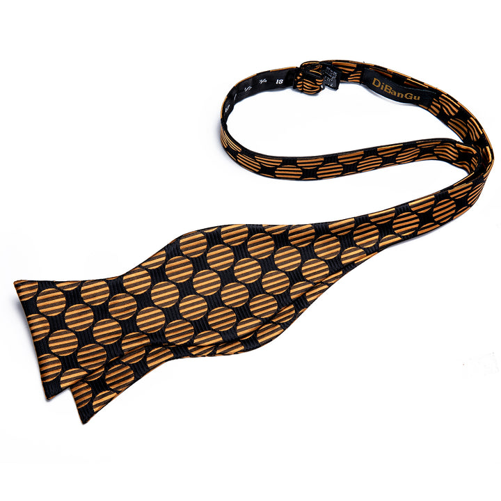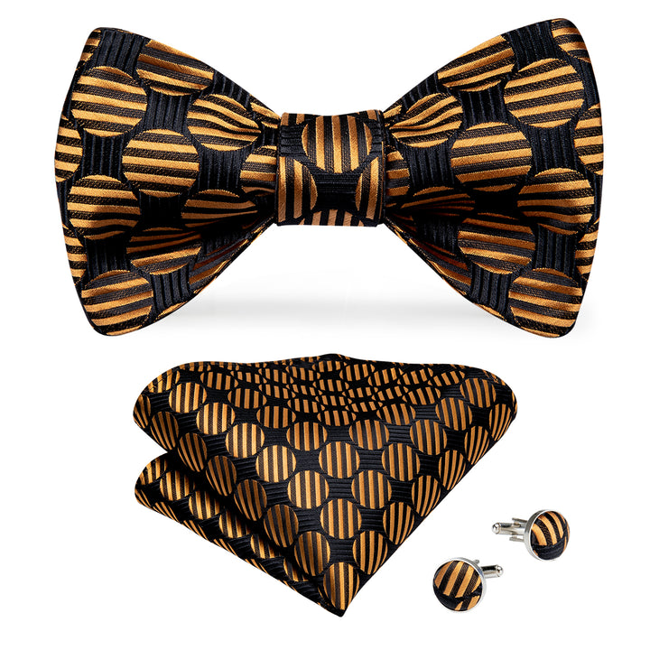 Black Golden Polka Dot Self-tied Bow Tie Pocket Square Cufflinks Set