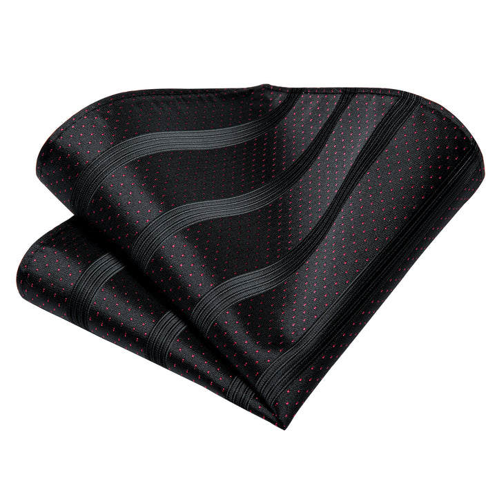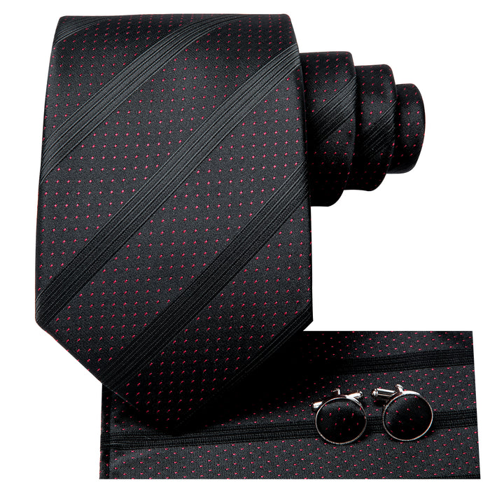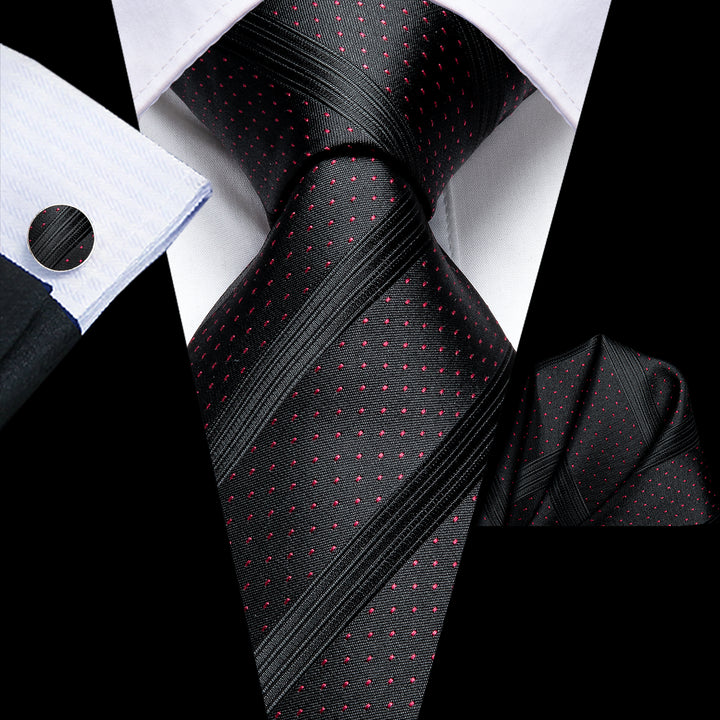 Black Strip with Red Dot Men's Tie Handkerchief Cufflinks Set