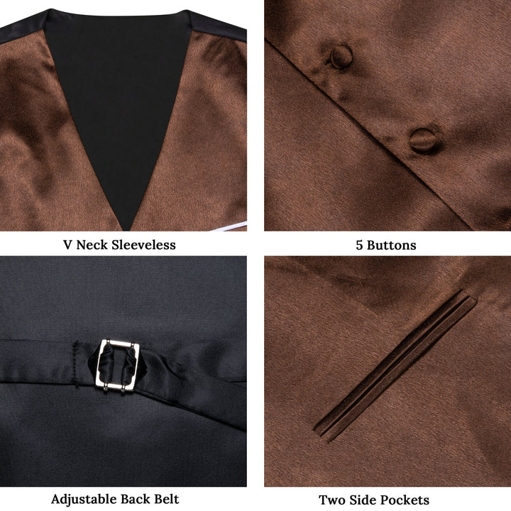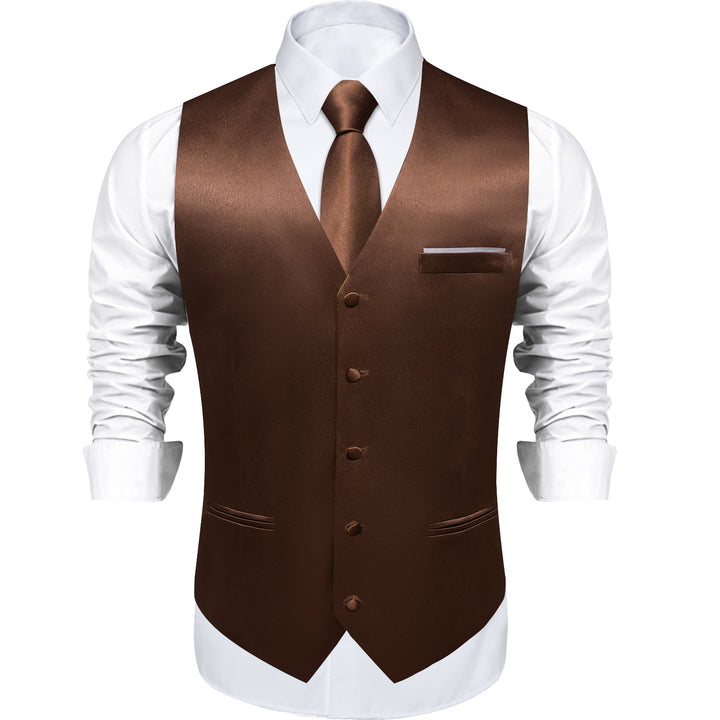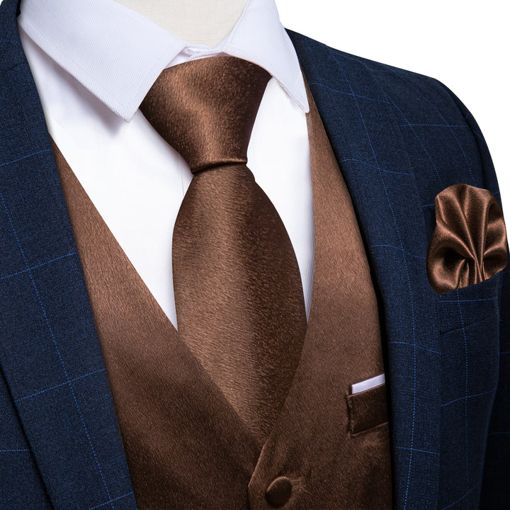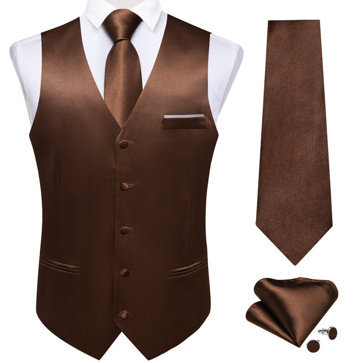 Ties2you Brown Suit Waistcoat Solid V-neck Casual Dress Vest Tie Hanky Cufflinks Set