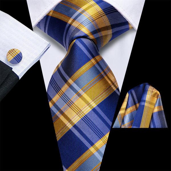 Golden Blue Plaid Silk Ascot Cravat knit ties for sale with floral tie Lapel Pin
