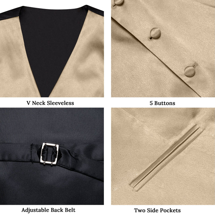 Champine Solid Shining Silk Formal Men's Vest Hanky Cufflinks Necktie Bowtie Set