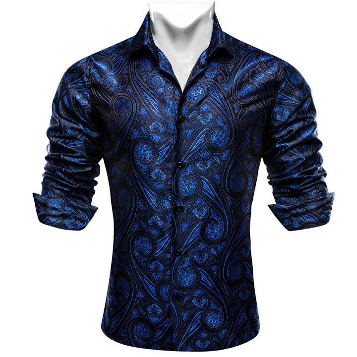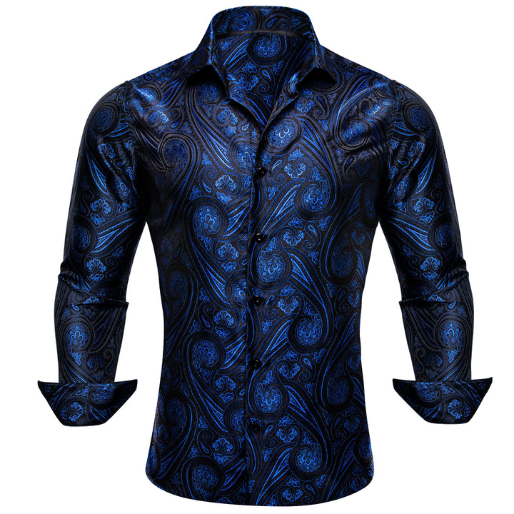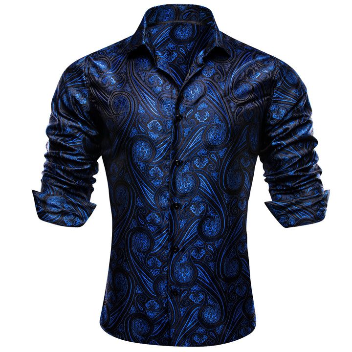 Ties2you Mens Royal Blue Western Shirt Silk Black Paisley Long Sleeve Button Down Shirt