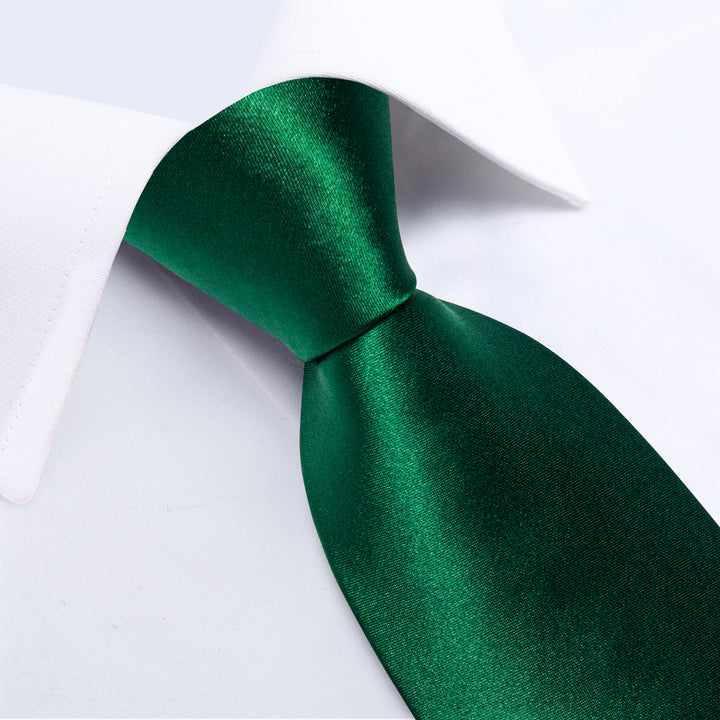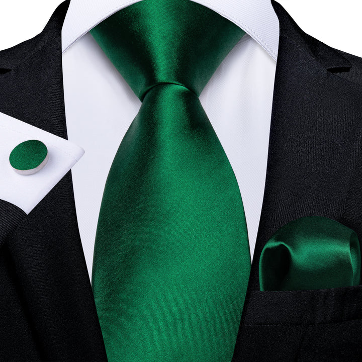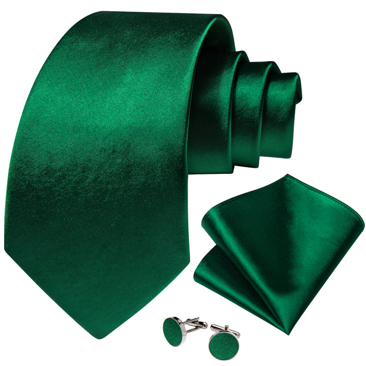 Ties2you Emerald Green Tie Solid Satin Silk Men's Necktie Pocket Square Cufflinks Set
