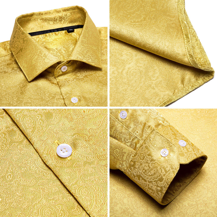 Golden Paisley Silk Men's Long Sleeve Shirt