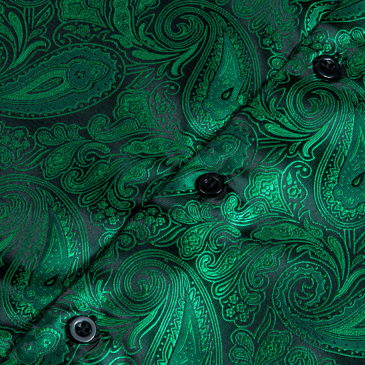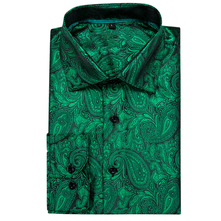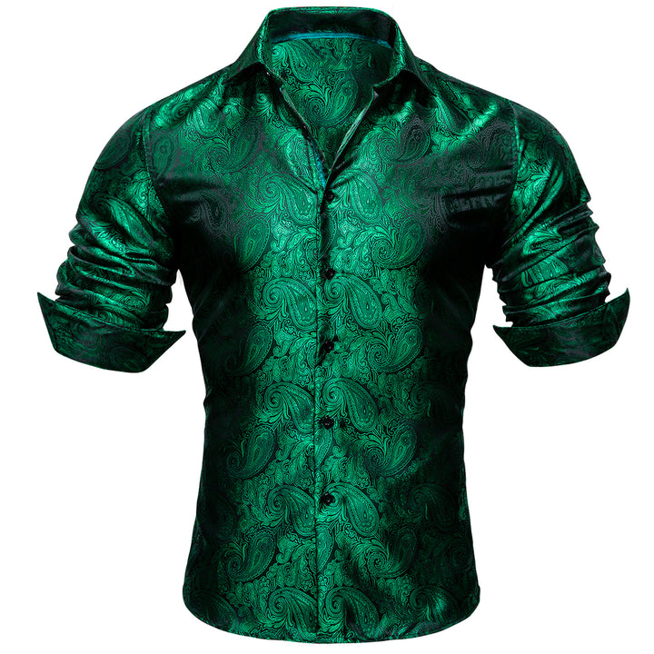 Green Paisley Style Silk Men's Long Sleeve Shirt
