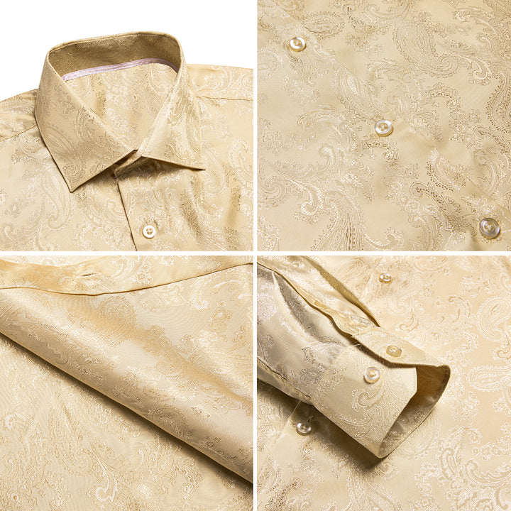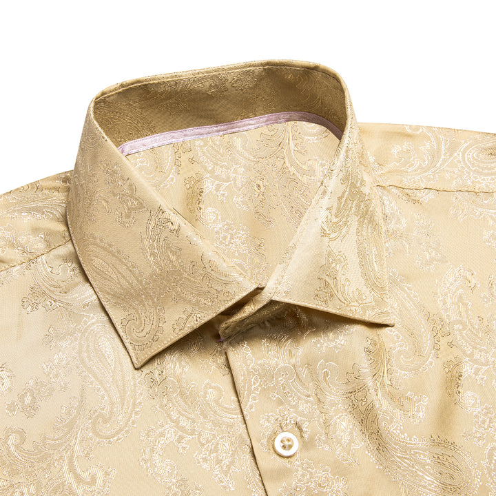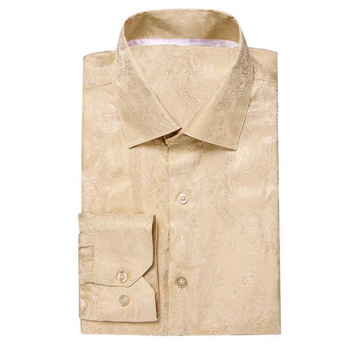 Khaki Paisley Silk Men's Long Sleeve Shirt