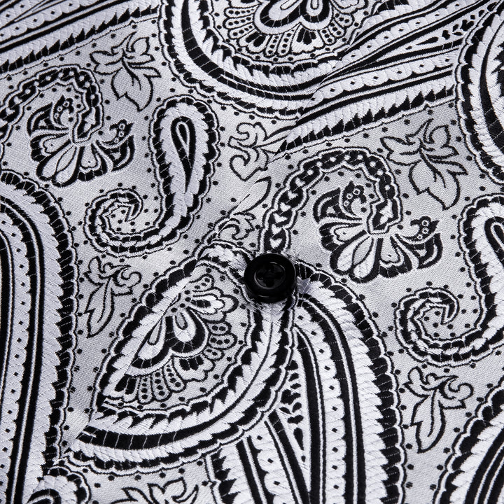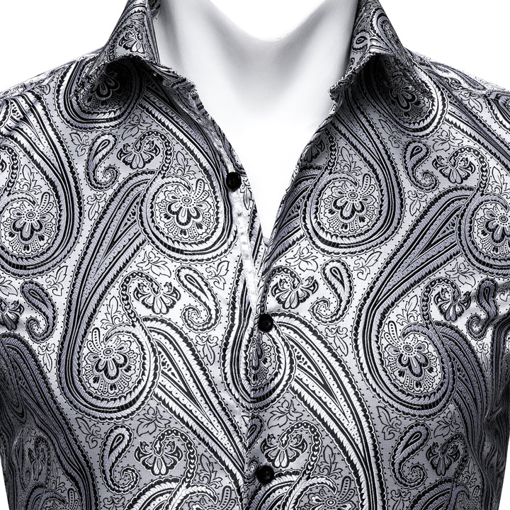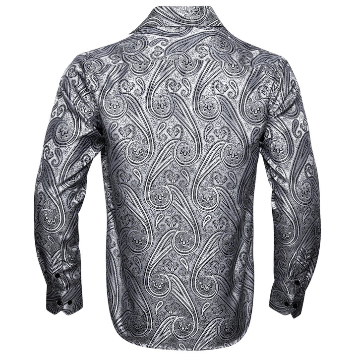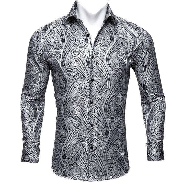 Light Gray Floral Silk Men's Long Sleeve Shirt