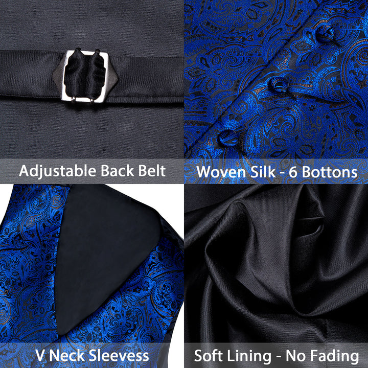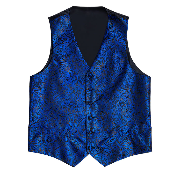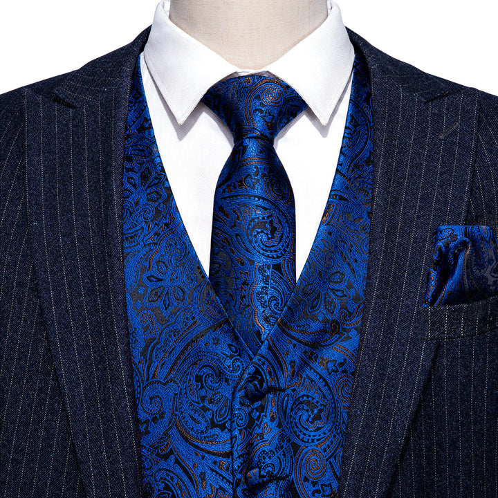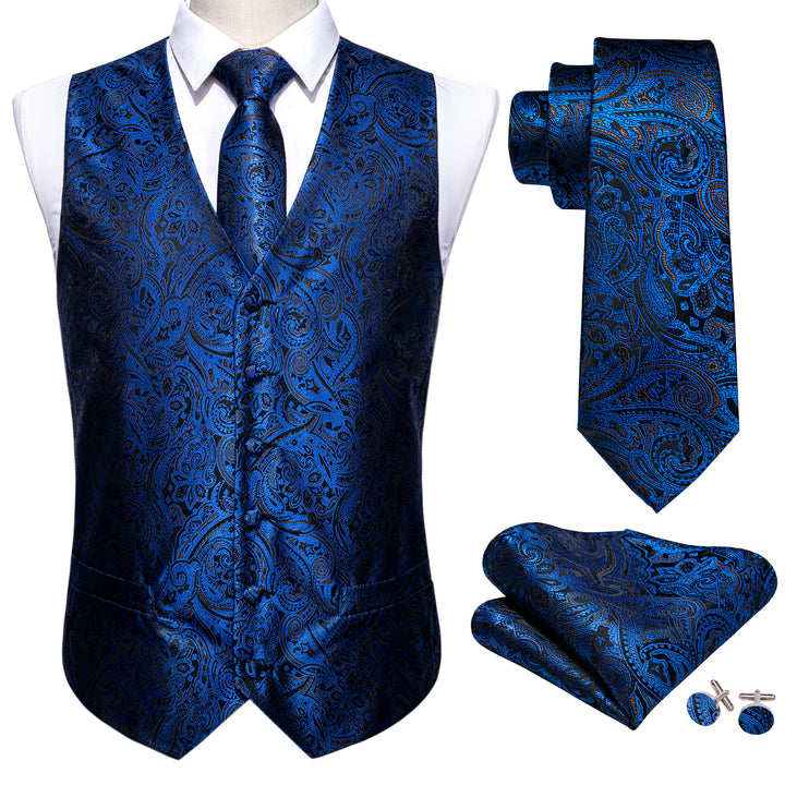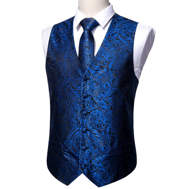 Navy Blue Paisley Men's Vest Tie Hanky Cufflinks Set Waistcoat Suit Set