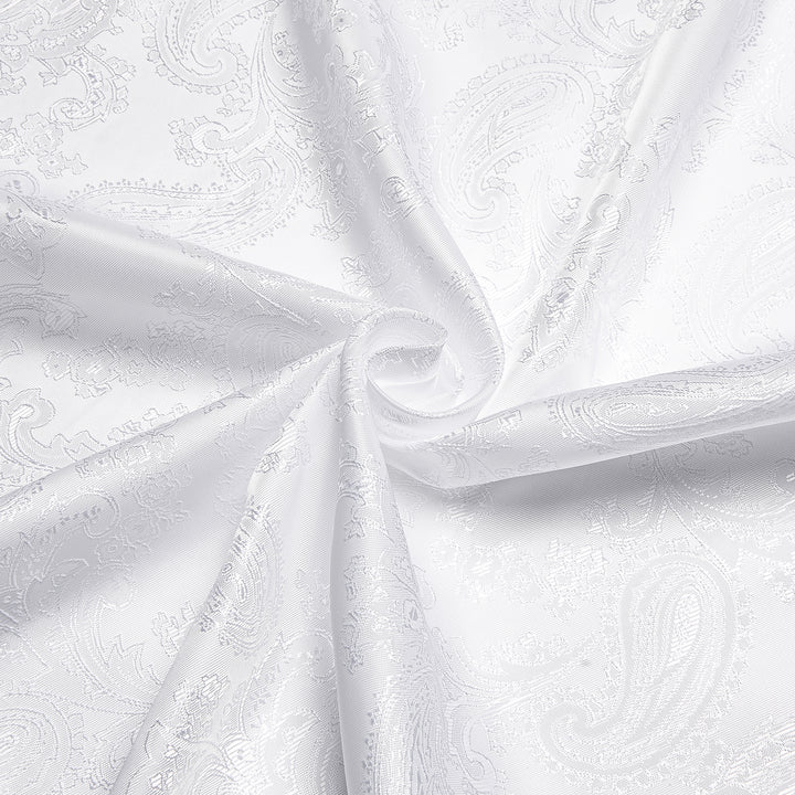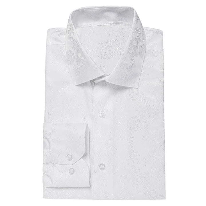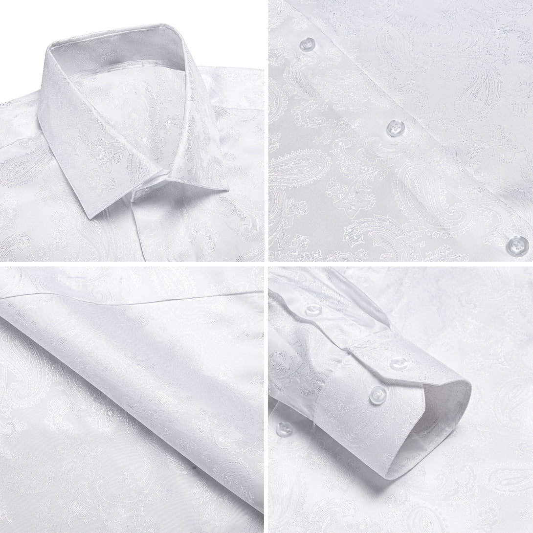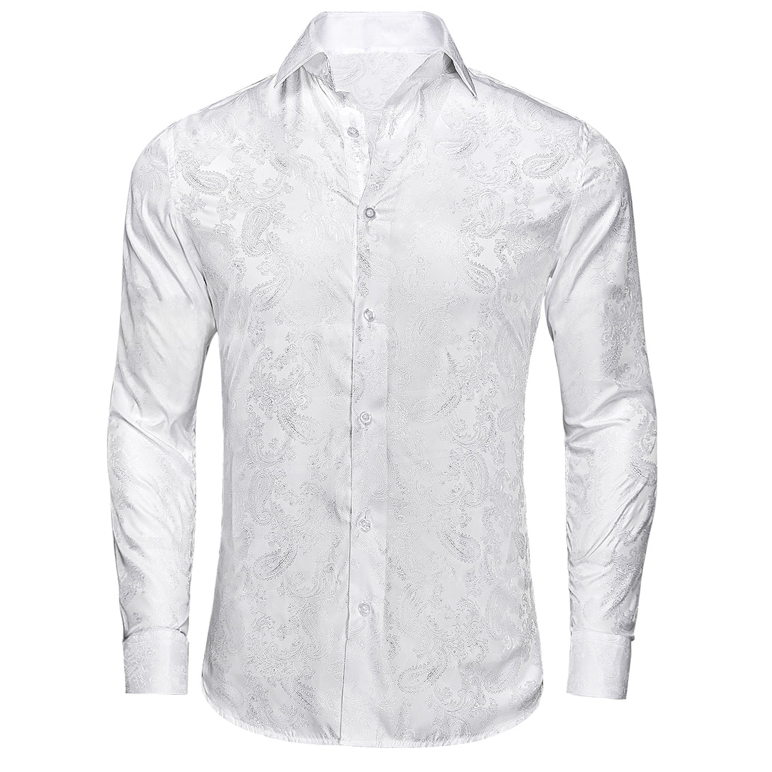 Pure White Paisley Silk Men's Long Sleeve Shirt