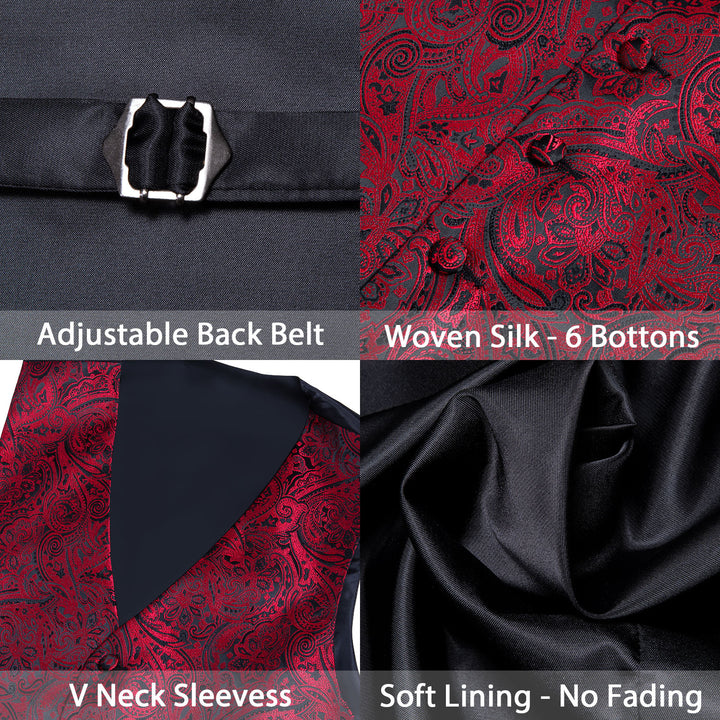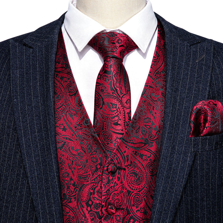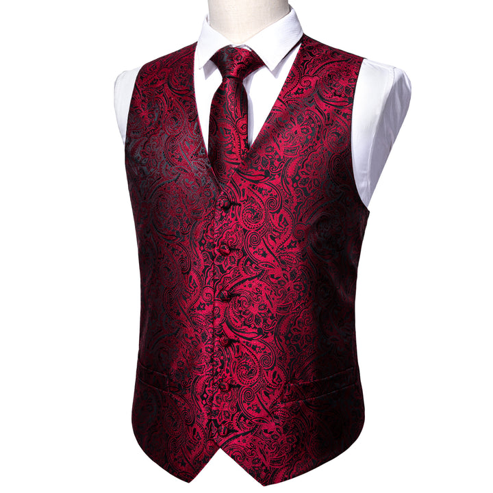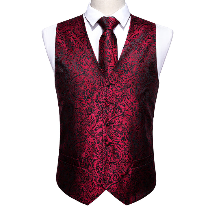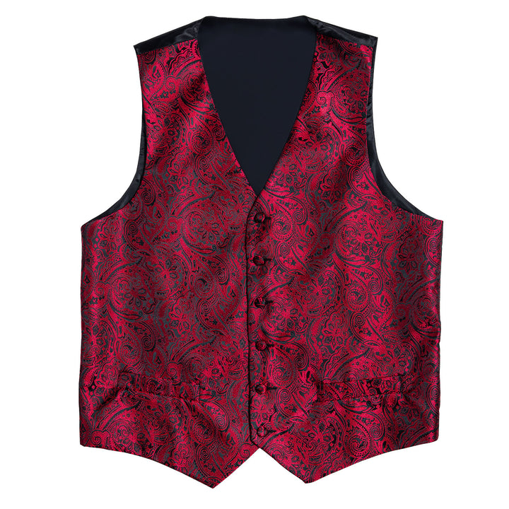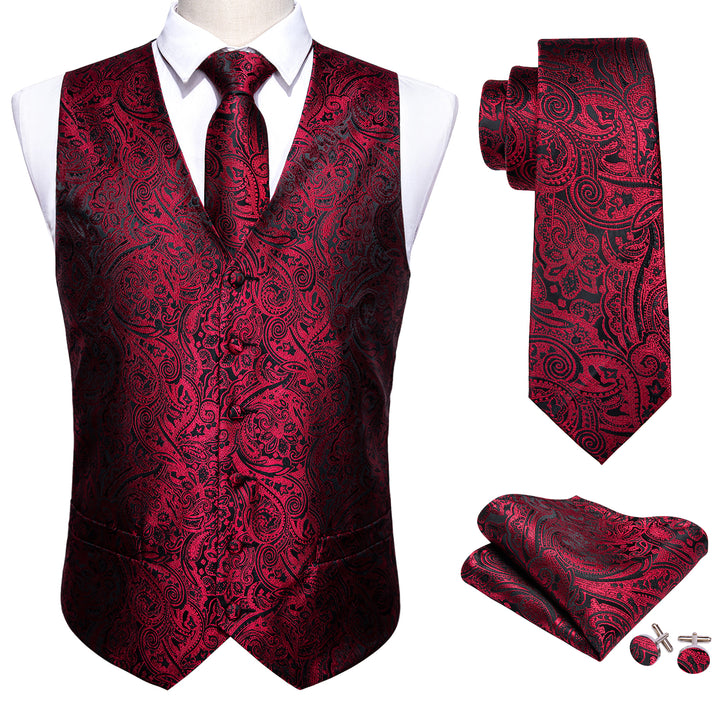Red Black Paisley Men's Vest Tie Hanky Cufflinks Set Waistcoat Suit Set