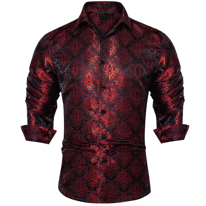 Red Black Paisley Silk Men's Long Sleeve Shirt