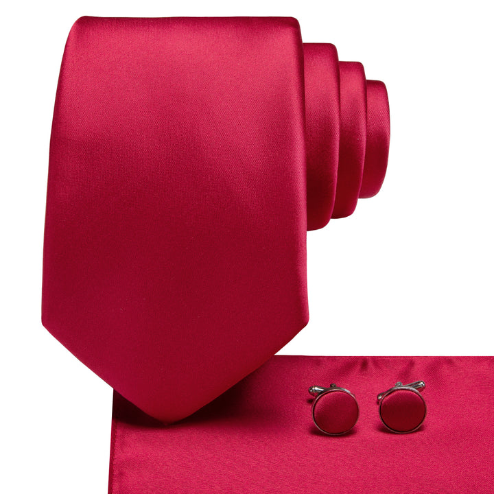 wedding solid silk mens maroon red tie handkerchief cufflinks set