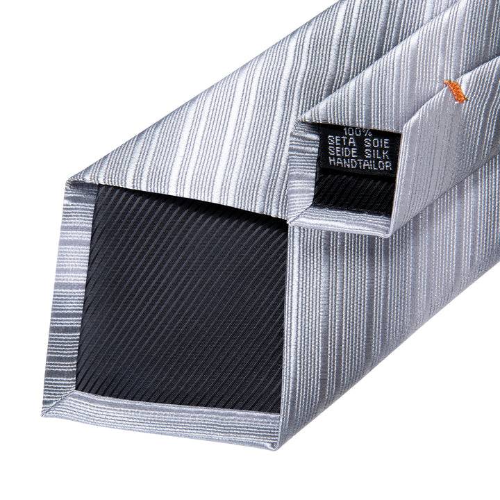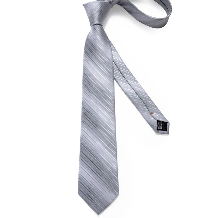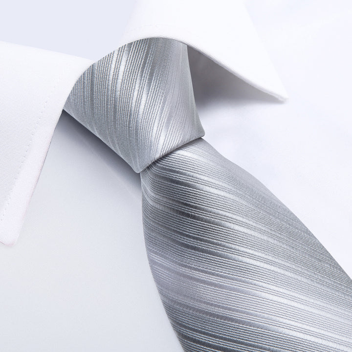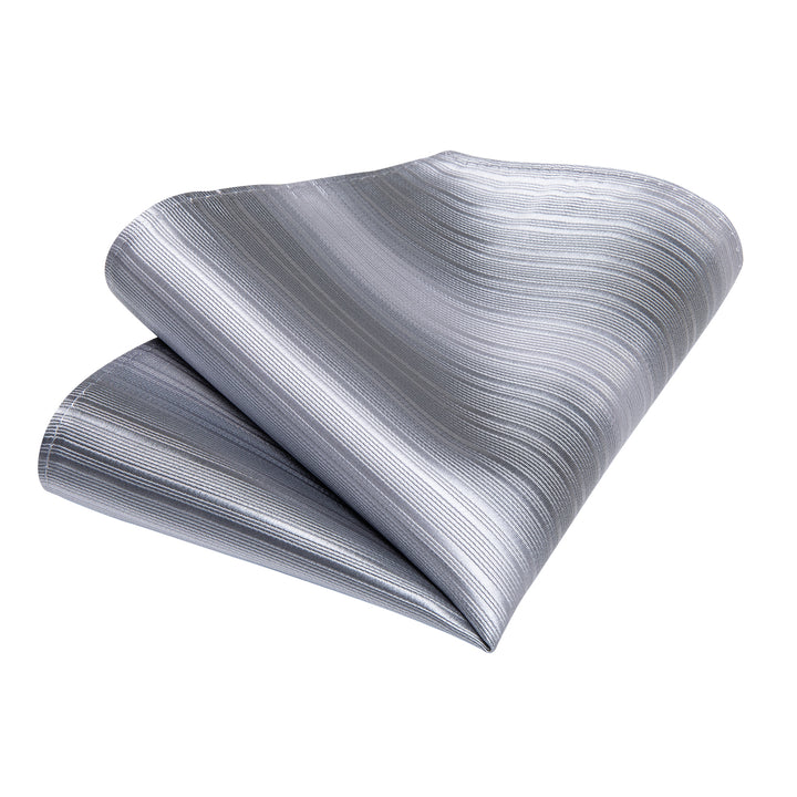 Silver Grey Striped Men's Necktie Pocket Square Cufflinks Set