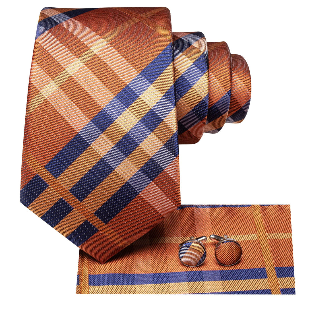 Ties2you Extra Long Necktie 70 Inch Burnt Orange Plaid Tie Pocket Square Cufflinks Set