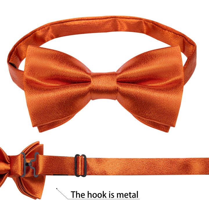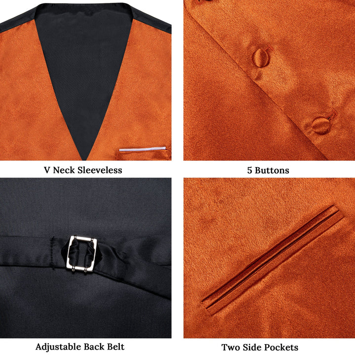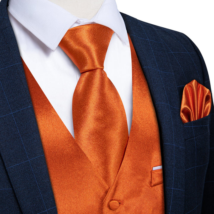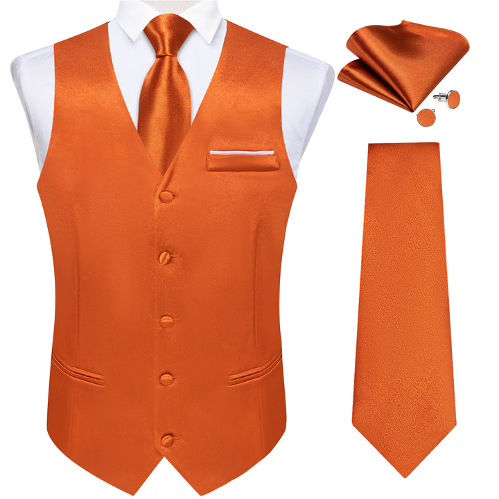 Orange Solid Shining Silk Men Vest Necktie Bow Tie Handkerchief Cufflinks Set