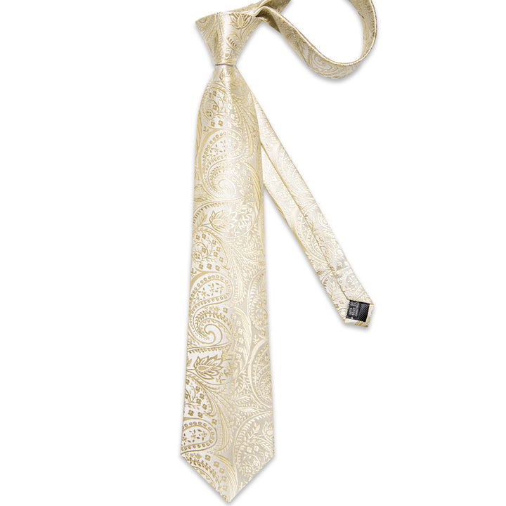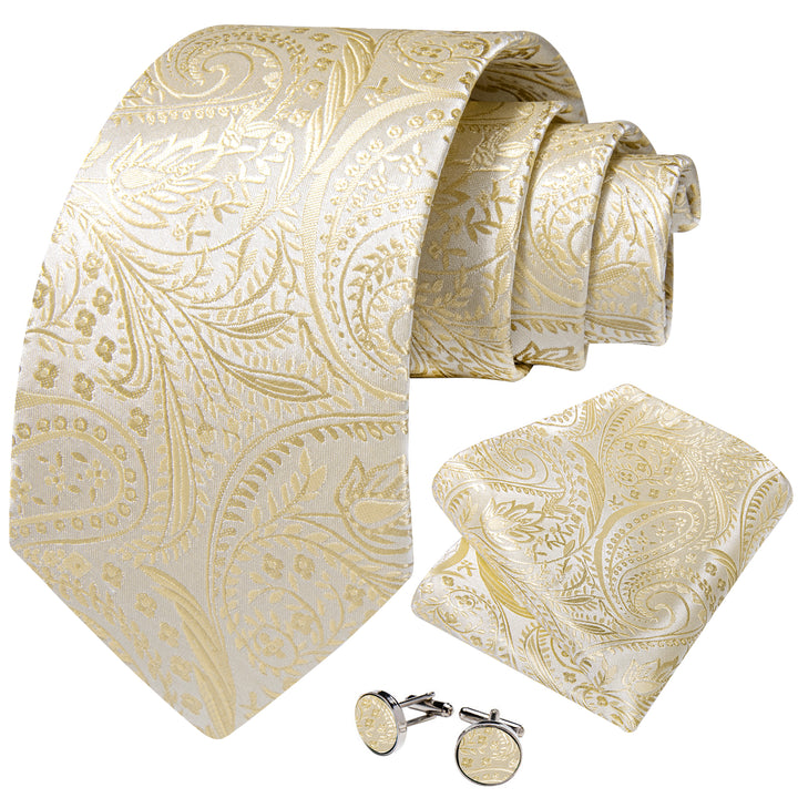 PapayaWhip Floral Men's Necktie Pocket Square Cufflinks Set
