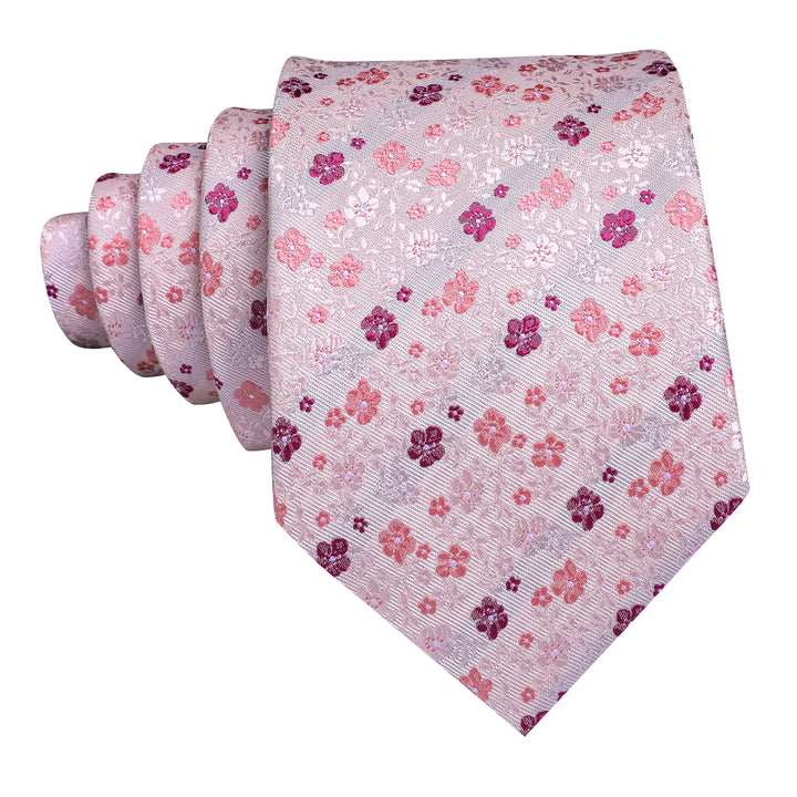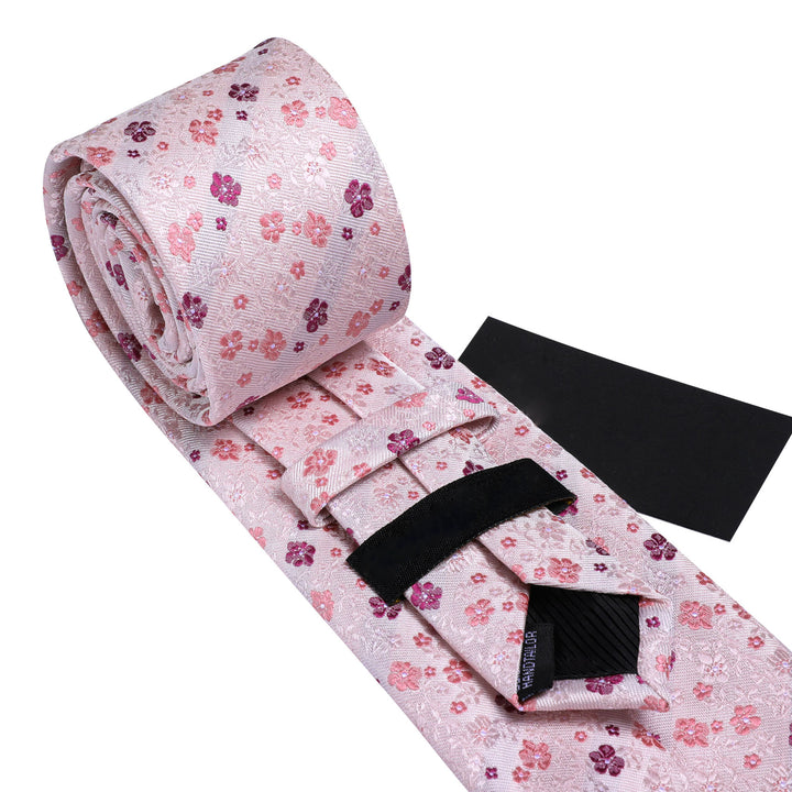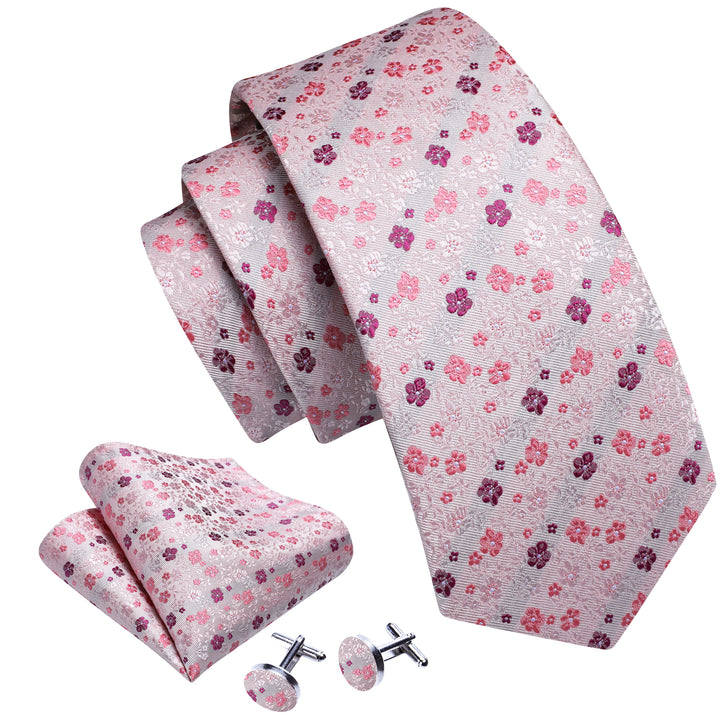 Pink Flowers Floral Mens Tie Handkerchief Cufflinks Set