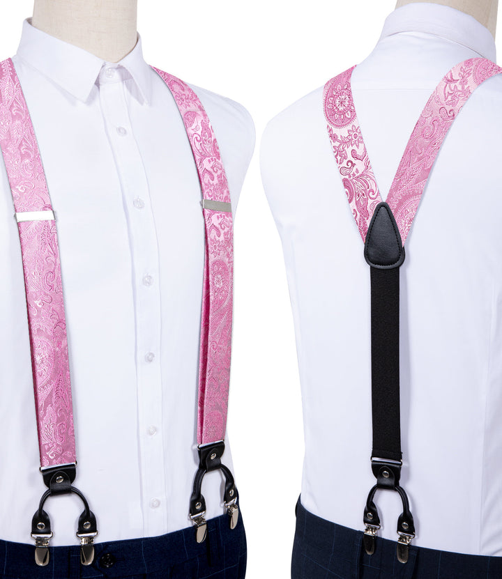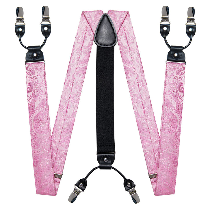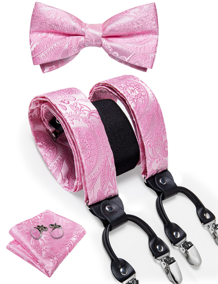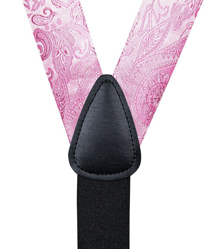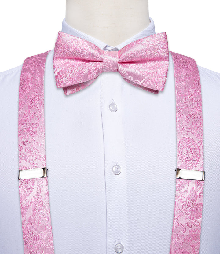 Pink Paisley Y Back Brace Clip-on Men's Suspender with Bow Tie Set