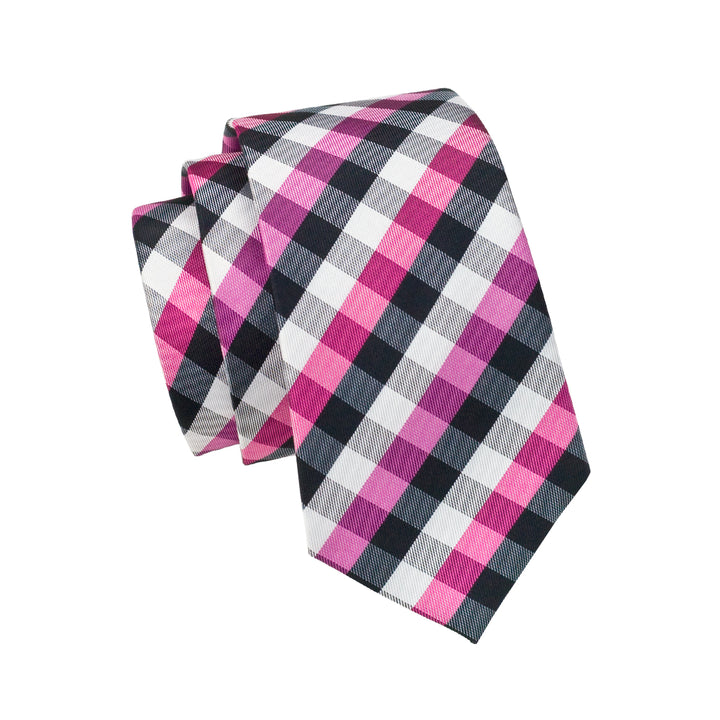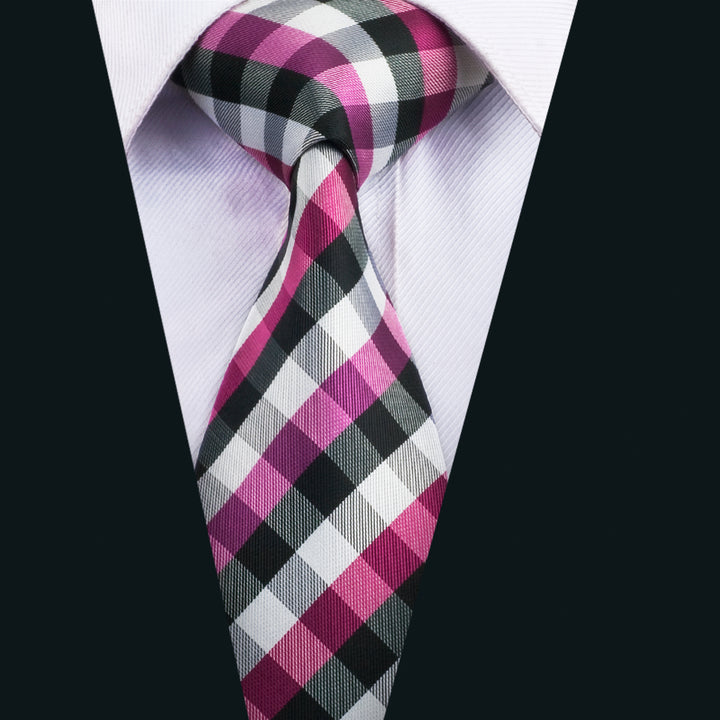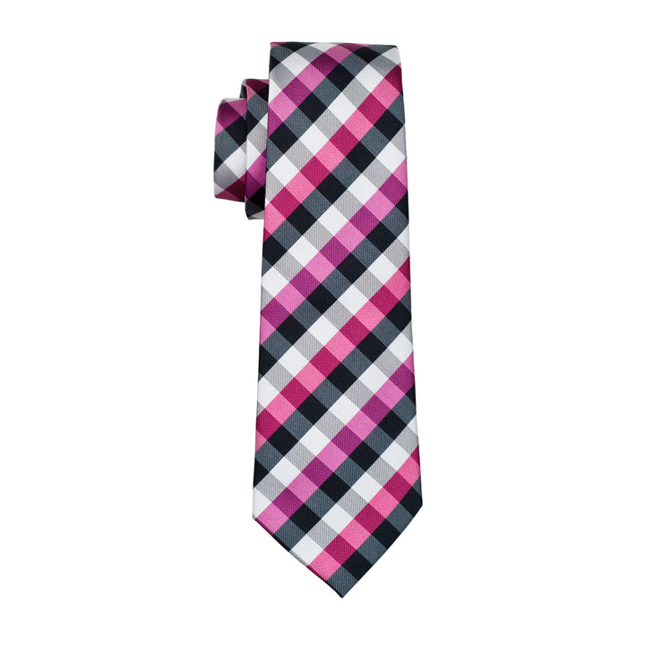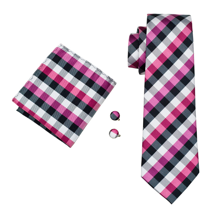 Pink Plaid Tie Pocket Square Cufflinks Set