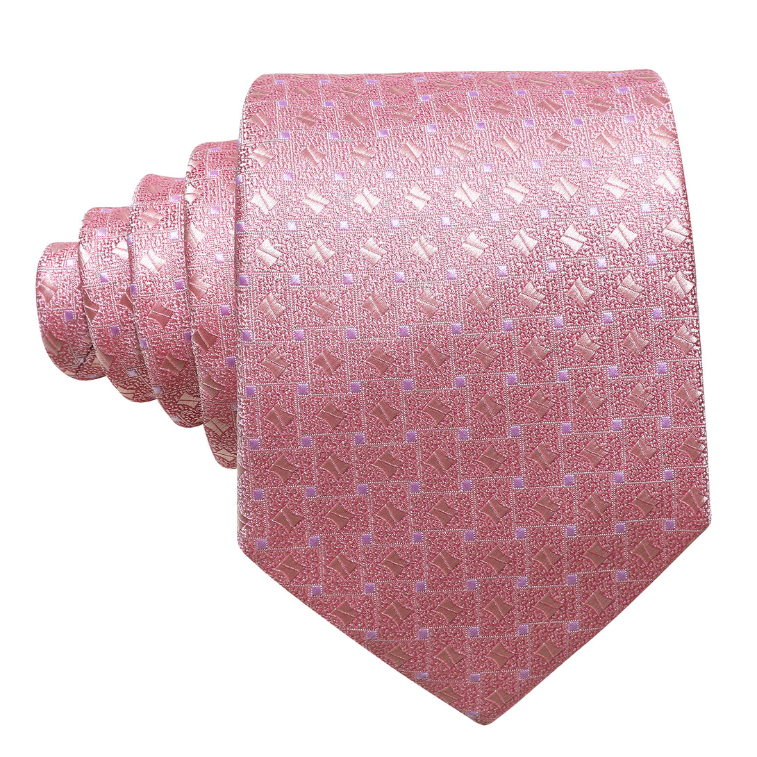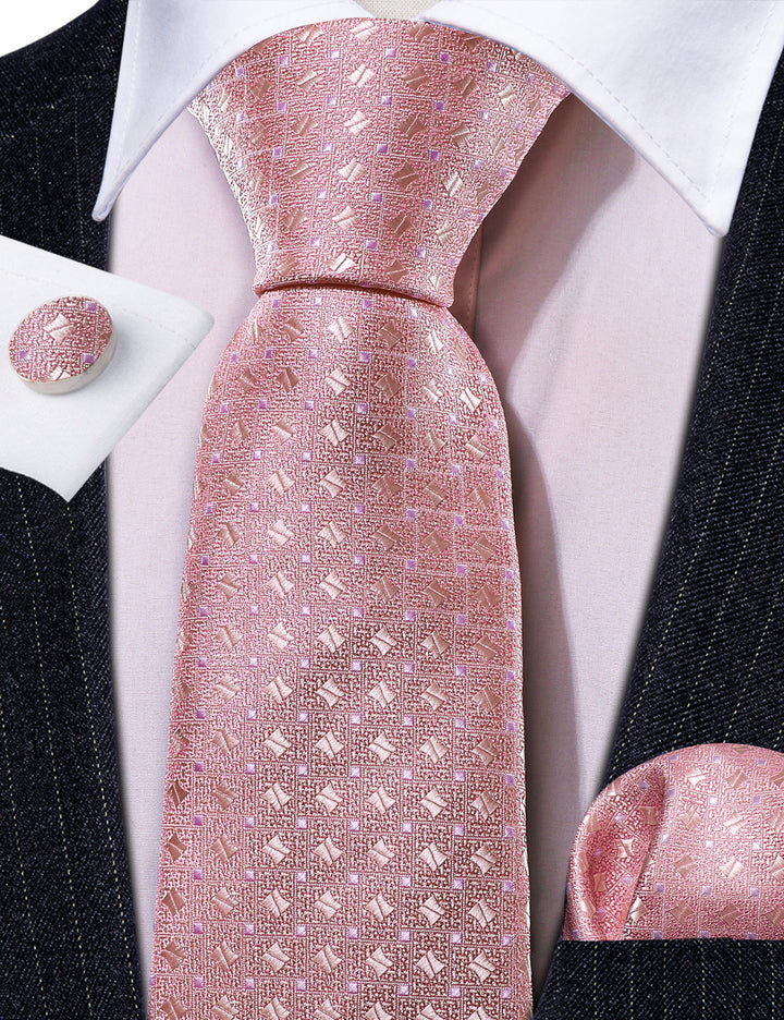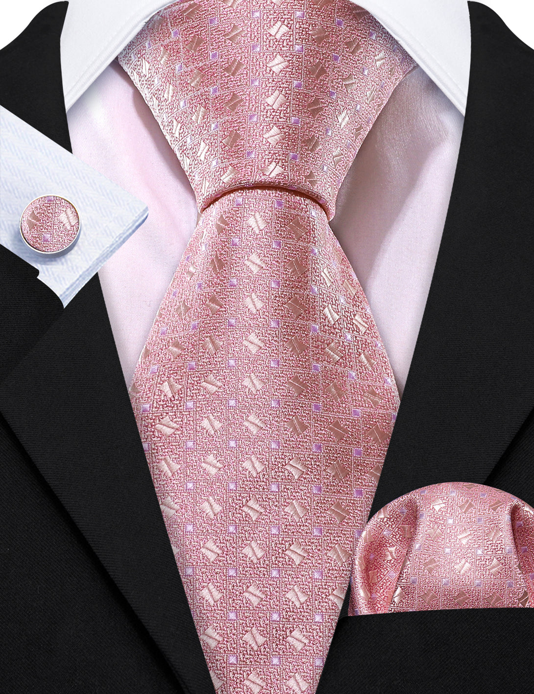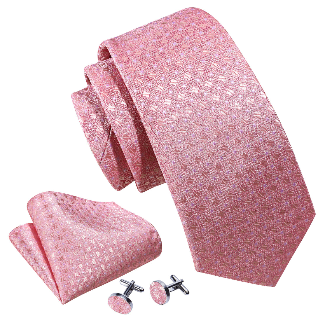 Pink Purple Novelty Silk Tie Pocket Square Cufflinks Set