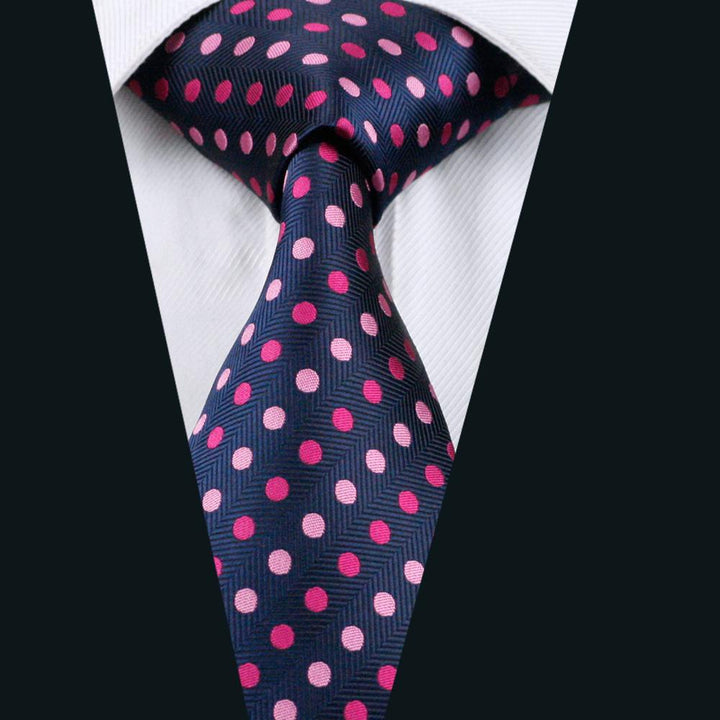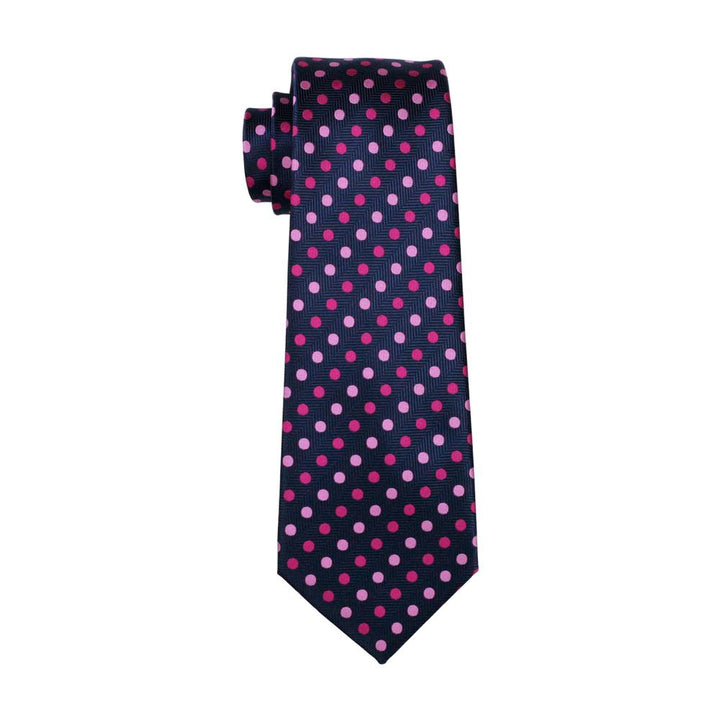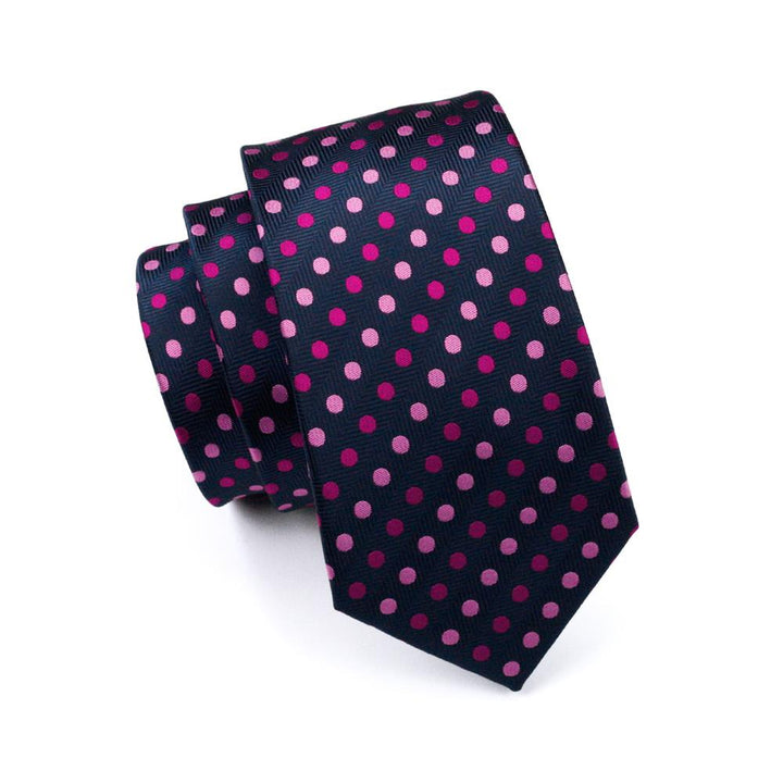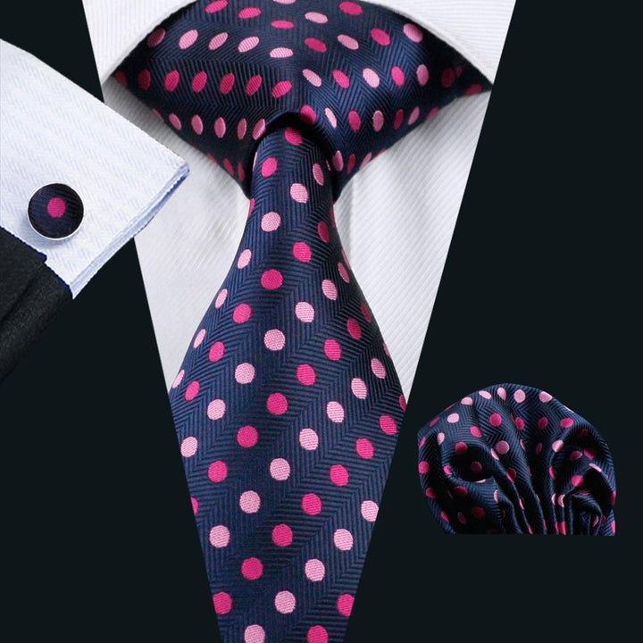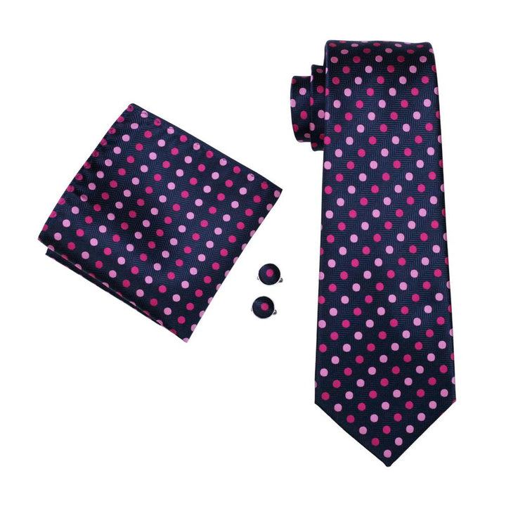 Pink Purple Polka Dot Men's Tie Pocket Square Cufflinks Set