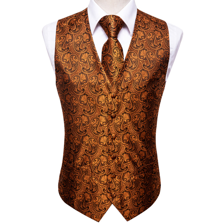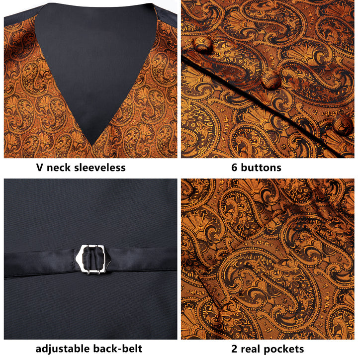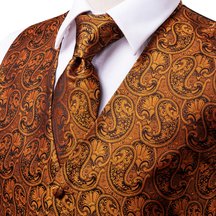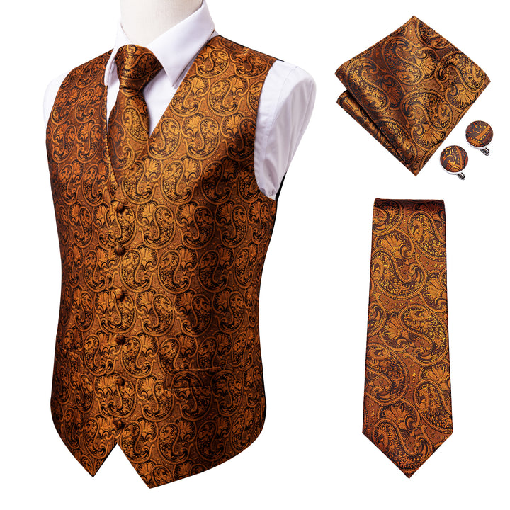 Ties2you Marigold Silk Formal Vest Paisley 4PCS Silk Tuxedo Vest Tie Hanky Cufflinks Set