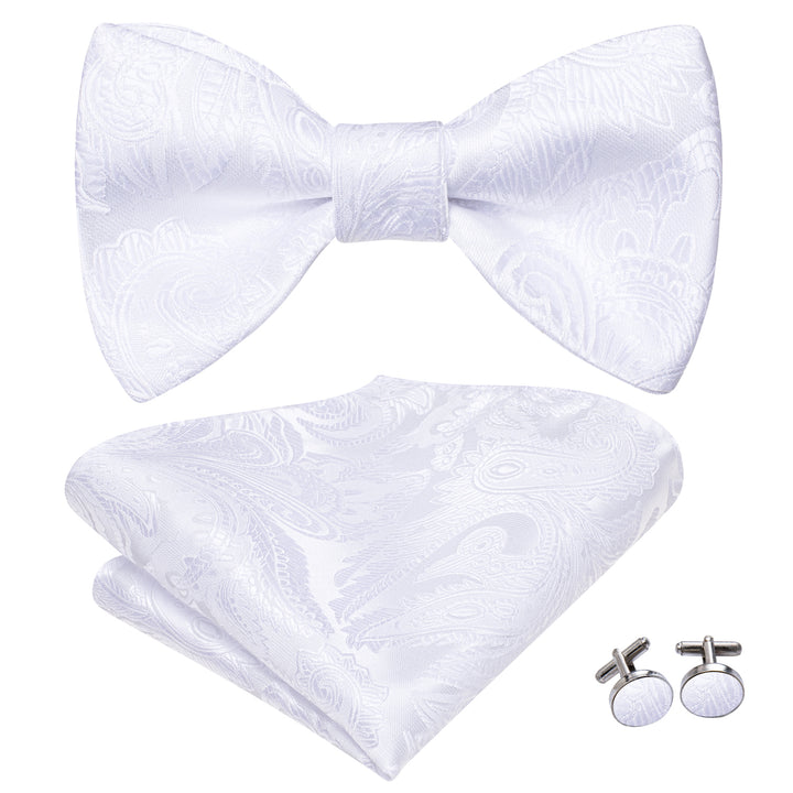 Ties2you White Self-tie Tuxedo Bowtie Solid Bow Tie Pocket Square Cufflinks Set