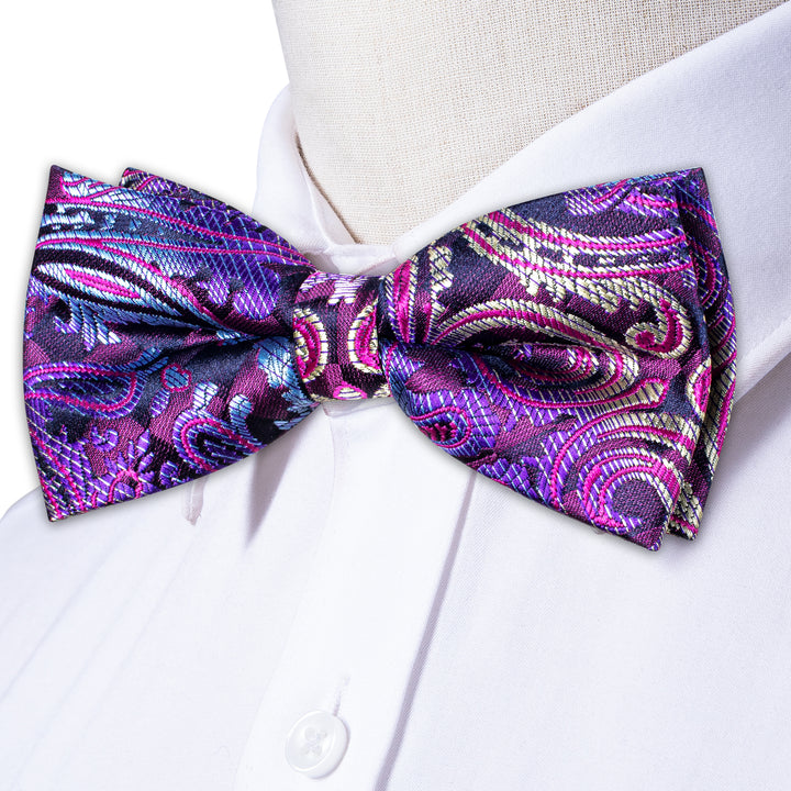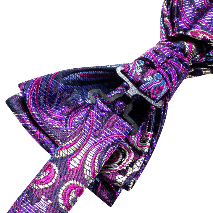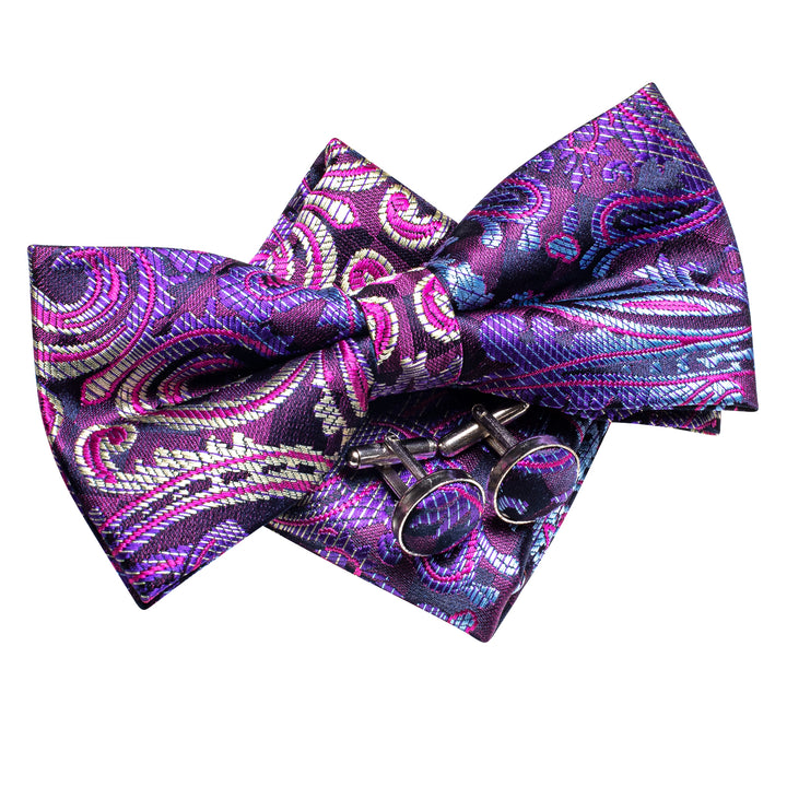 Ties2you Paisley Pre-tied Bowtie Purple Wedding Party Bow Tie Handkerchief Cufflinks Set
