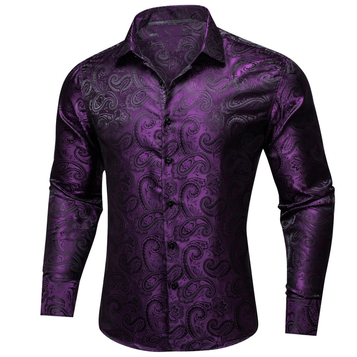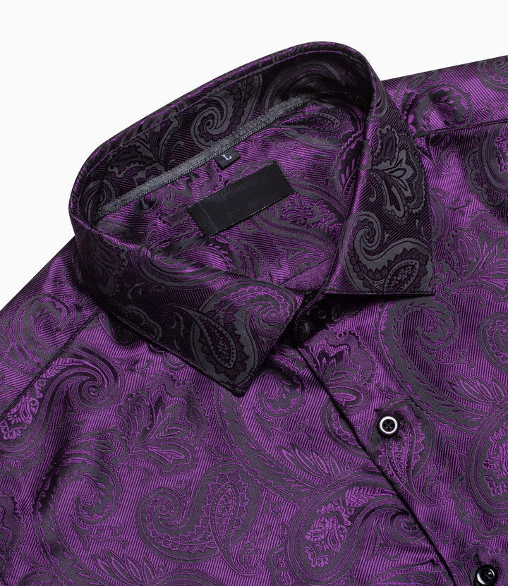 Ties2you Mens Purple Dress Shirt Floral Silm Fit Long Sleeve Button Down Shirt