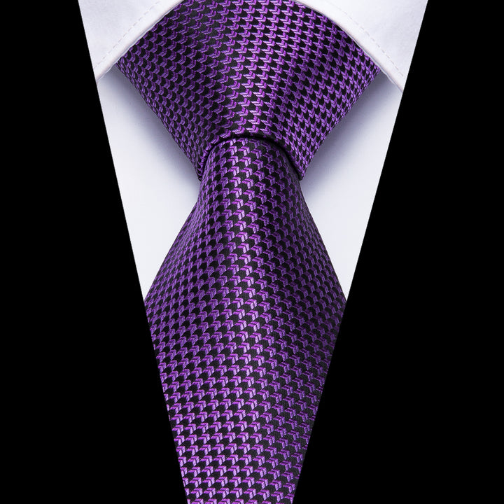 fashion irregular grid plaid silk purple tie pocket square cufflinks set