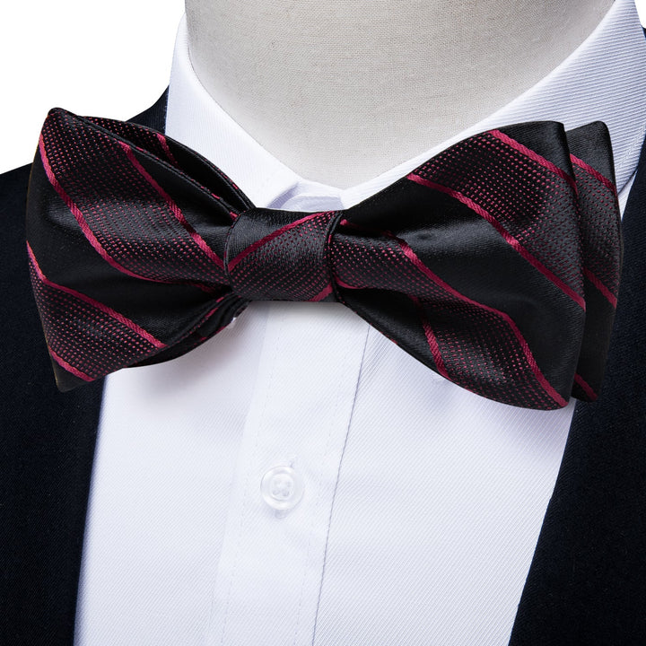 Ties2you Red Striped Bowtie Black Self-tie Bow Tie Handkerchief Cufflinks Set for Men
