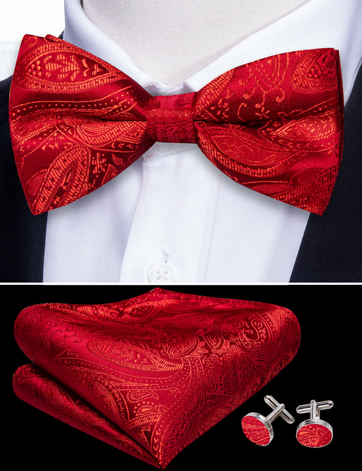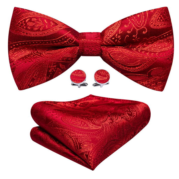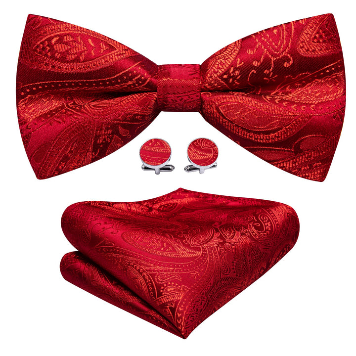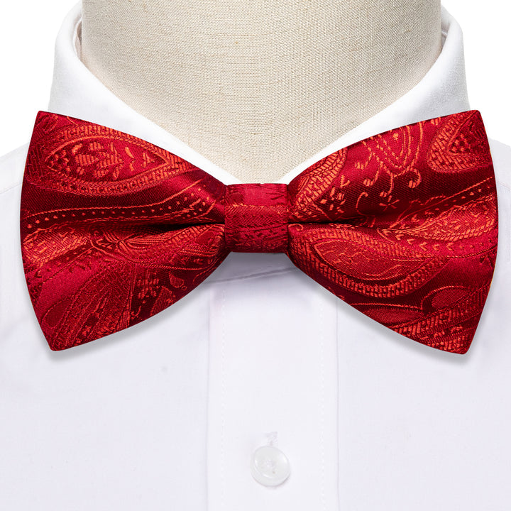 Ties2you Red Paisley Tuxedo Bow Tie Pre-tied Wedding Bowtie Pocket Square Cufflinks Set