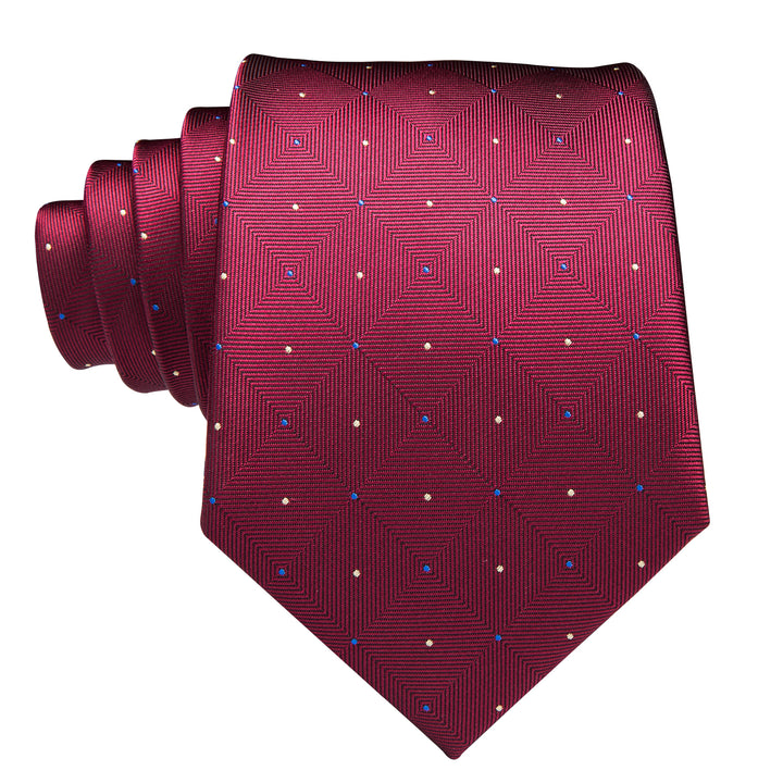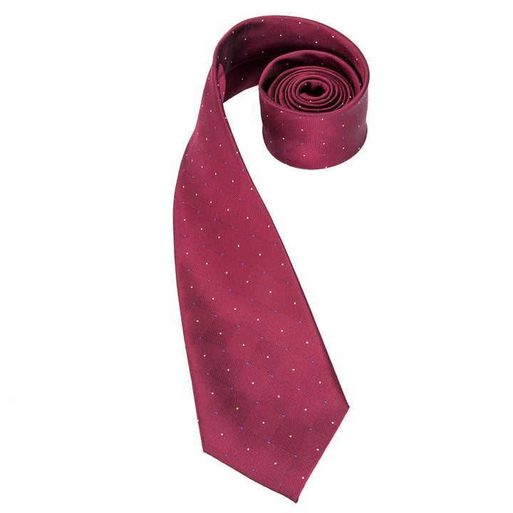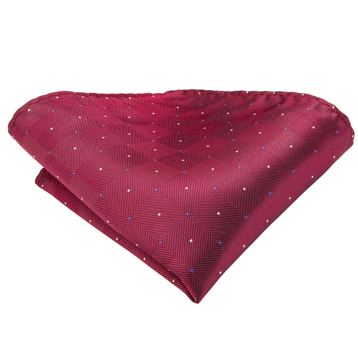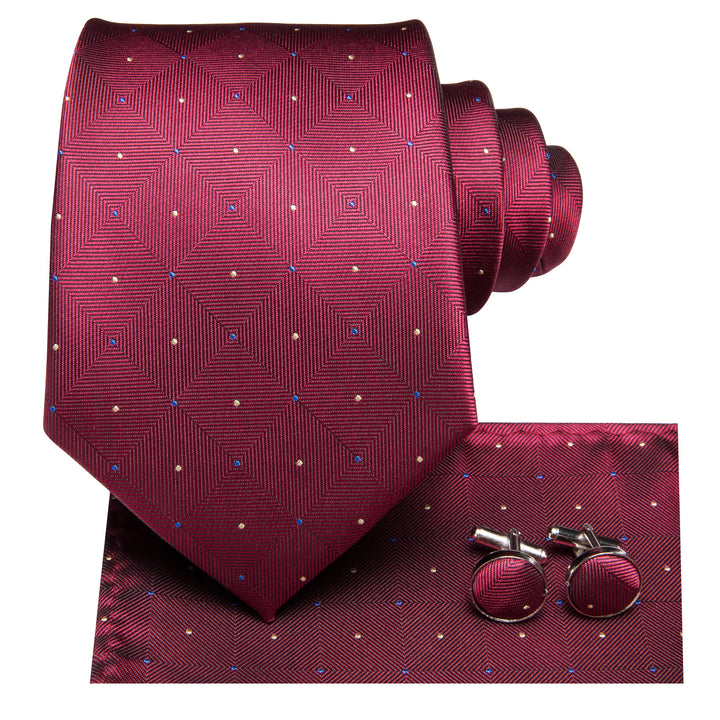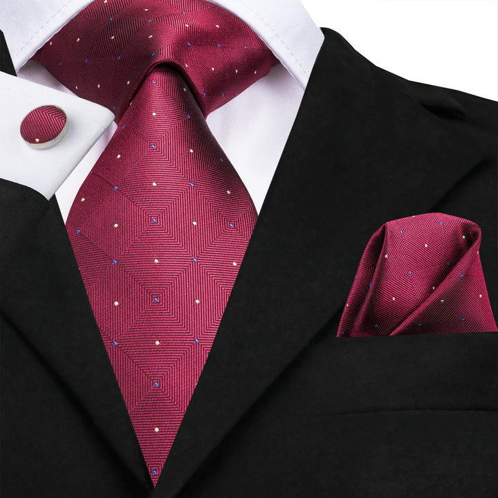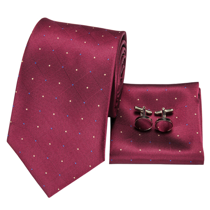Red Plaid with Yellow Blue Dot Silk Men's Tie Handkerchief Cufflinks Set
