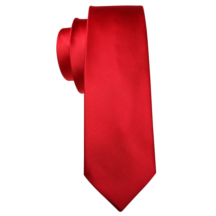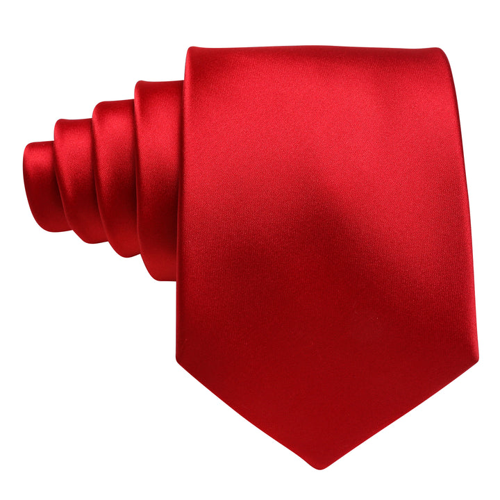 Red Solid Men's Necktie Hanky Cufflinks Set